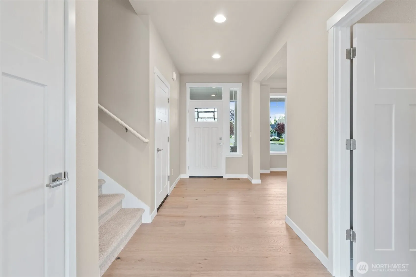 MOVE-IN-READY! The Rainier by Rob Rice Homes! 2-story, w/3 bedrooms & 2-1/2 baths, formal dining & oversized bonus room. Quartz counters throughout, shaker style Maple cabinets w/shadow stain and full ext. guide & soft close drawers. Includes solar panels, heat pump and hybrid hot water tank. Enjoy air conditioning this summer! Formal dining & butler’s pantry w/wine cooler, microwave/oven combo, gas cooktop w/overhead vent hood & dishwasher. Hardwood floors in entry, kitchen, dining, & nook area. Primary suite w/5-piece bath, tile floors, quartz counters & large walk-in closet. Fully landscaped w/backyard privacy fencing.