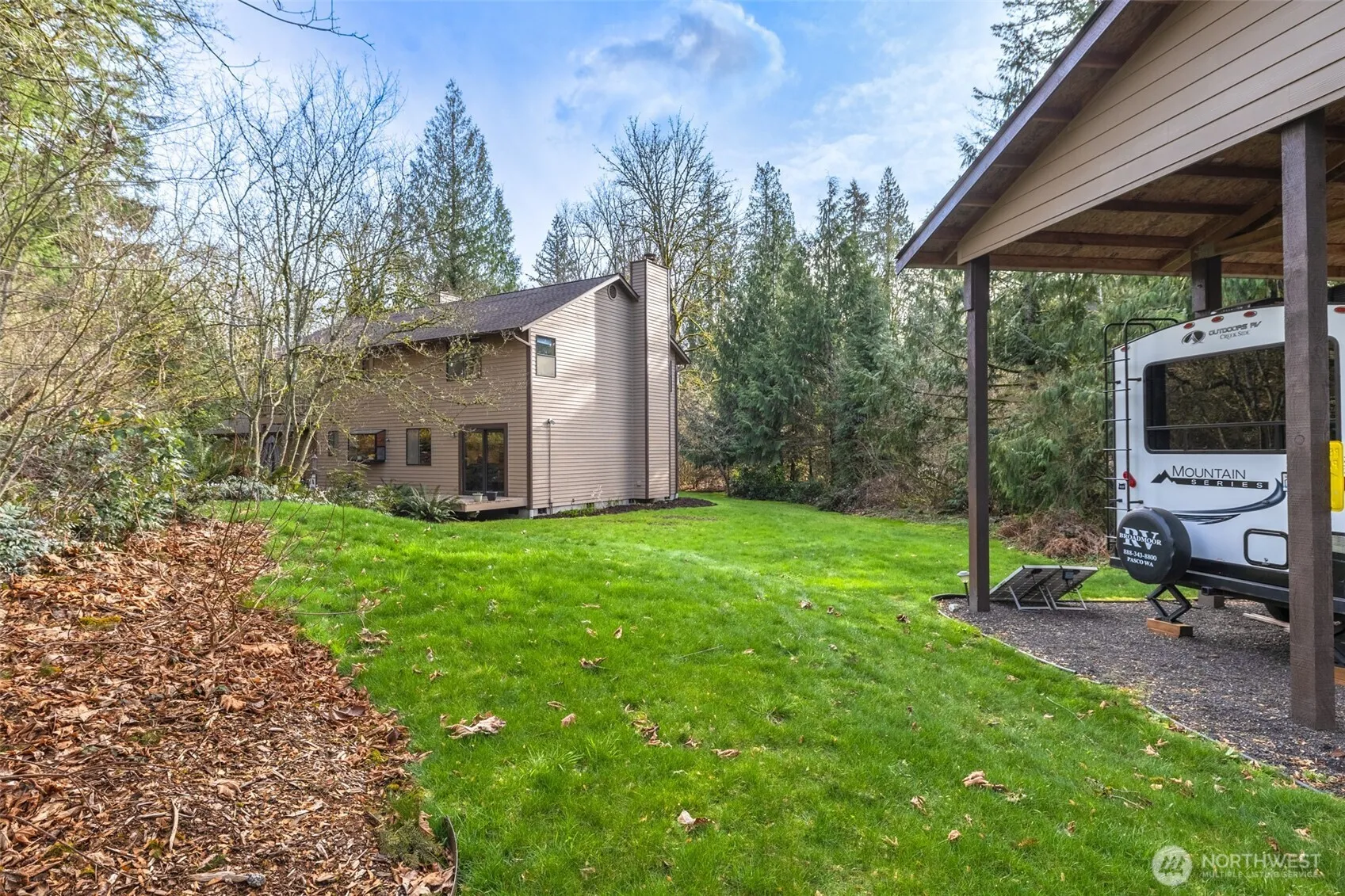 Welcome to this private custom home nestled 5 minutes from major stores, restaurants, shopping, freeway and walking trails. This 2+ acre property has lots of wildlife, birds, owls and deer to enjoy. As you come into the front porch there is a living room w/fireplace, dining room and kitchen w/eating space. There is a second living area that could be a bonus/bedroom/entertainment room w/fireplace. Upstairs there are 4 large bedrooms, 2 baths and deck off main rm. Hardwood floors downstairs. Attached garage has ample storage space. RV covered parking on the side of the house. Come make this spacious home your own. Original owners have lovingly cared for their home and enjoyed raising their family here. Inspection in supplements.