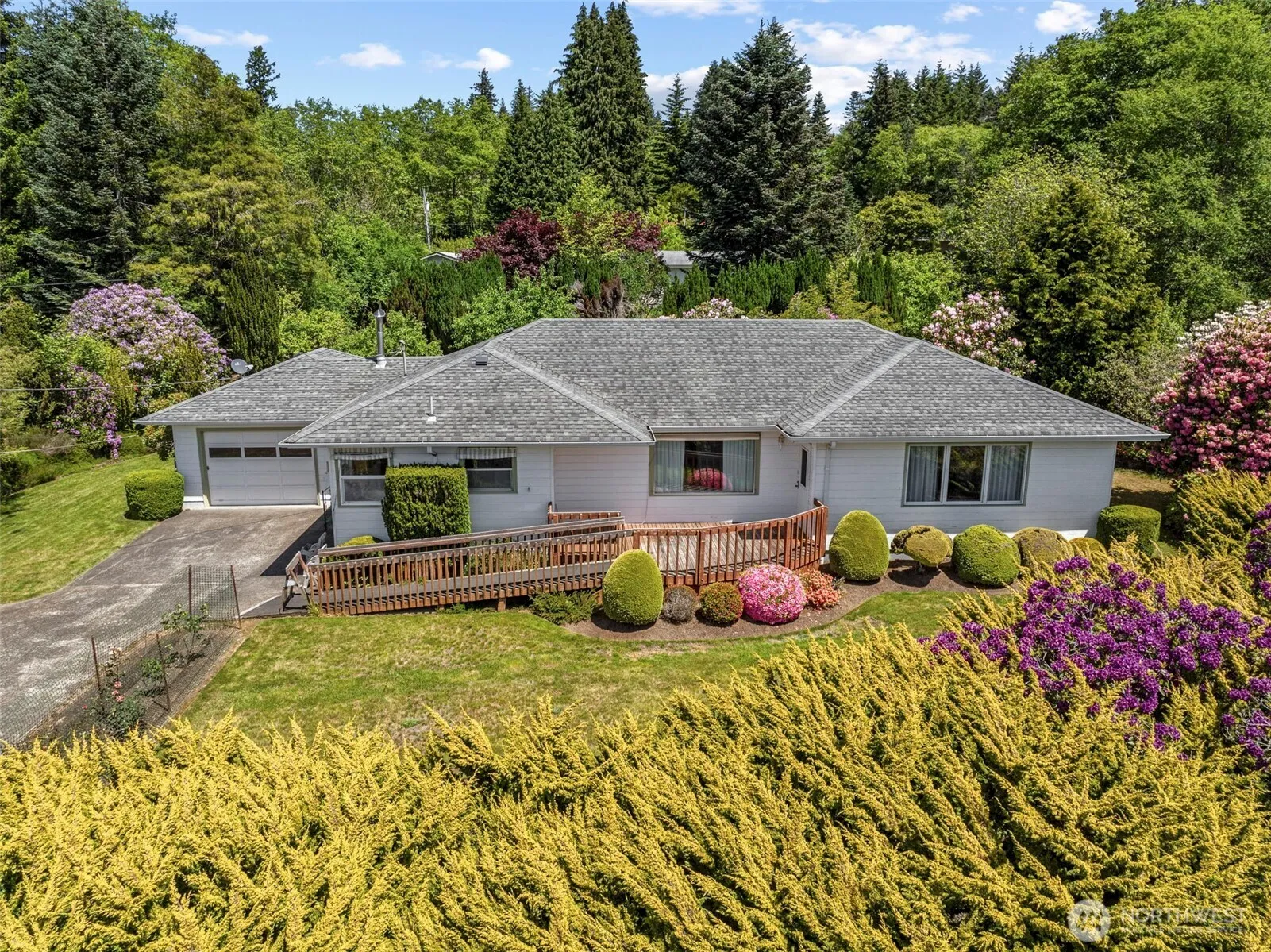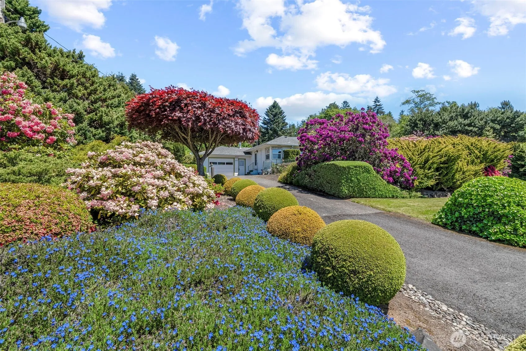 Gorgeous one level, solid built, stunningly maintained home & grounds set back along SR 4 in Cathlamet w/privacy & outbuilding. Nearly an acre boasts fruit trees, manicured shrubs, level, terraced & sloping lot depending on which area you’re on; large RV/Carport (could be enclosed) situated away from the home w/separate driveway; creek along east boundary, covered back patio w/outdoor fireplace (great for outdoor entertaining); wood storage, front deck & shed; updated windows compliment the 2 BR/2 BA home w/corner kitchen, large breakfast, dining & living areas, beautiful hardwood floors, generous sized bedrooms, ample closet & storage space plus detached garage w/work bench & laundry. Opportunity to turn this 1700 sf home into a 3 bedroom!