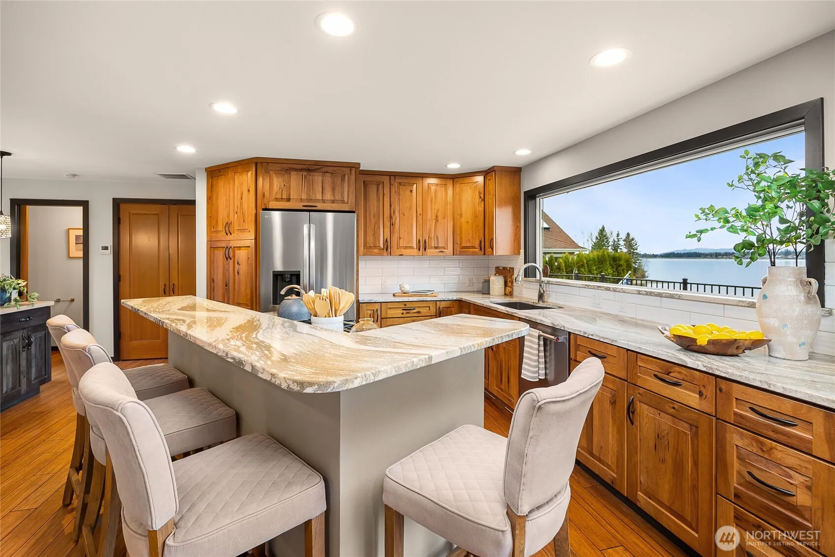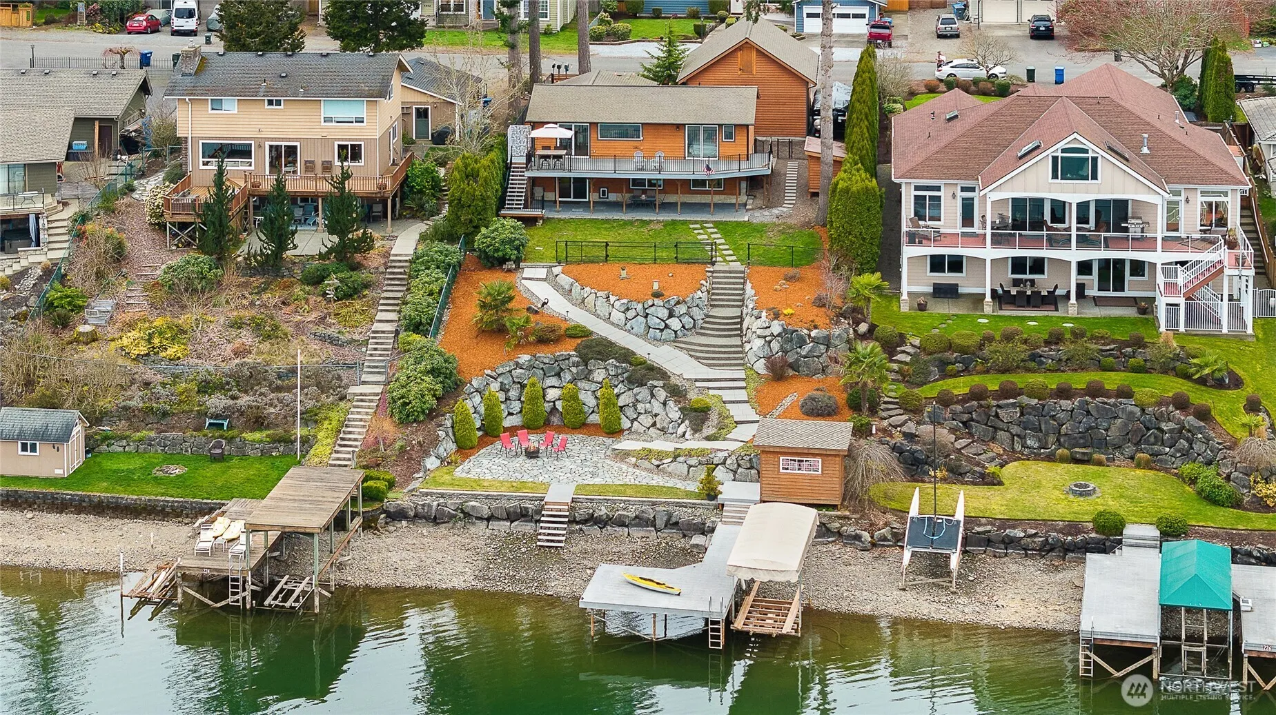 Enjoy the peaceful serenity from this breathtaking waterfront beauty, with an unbeatable (and highly accessible) Lake Tapps location and stunning views from every room. This custom remodeled home is fully-loaded with a versatile layout, generous living spaces and thoughtful improvements throughout. Boasting 70 feet of medium-bank waterfront, with a dock, hydraulic boat lift, and a myriad of outdoor entertainment space, including extensive hardscaping, fully-fenced yard and view deck. An over-sized 24×30 detached garage/shop (with attic) provides additional storage for ALL the toys. Additional highlights include RV parking, outbuildings, and access to private lakefront parks with a boat launch, docks, swimming areas and more–welcome home!