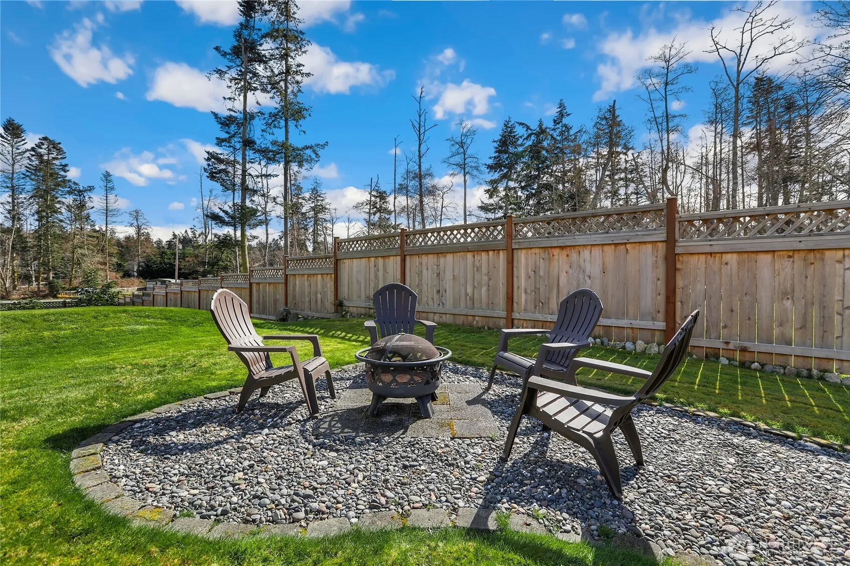 An ideal retreat to work from home with active ocean view of ferries, aircraft carriers, subs & shipping combined with a well laid out open floor plan. 2 Large primary bedrooms, 3 full bathrooms & 2 larger rooms for potential home office. Extensive storage & large 2-car garage w/work bench. Two-thirds of the yard is fenced with mature pine trees & planted pines for privacy while relaxing by the fire pit. Newer roof, heating, air conditioning, hot water heater & flooring have been added along w/new counters and fixtures in the kitchen & bathrooms. Expansive water & views include the Olympic Mountains, Port Townsend, Canada, down the Strait of Juan de Fuca, Admiralty Bay & Fort Casey. The neighborhood is pedestrian-friendly with beach access.