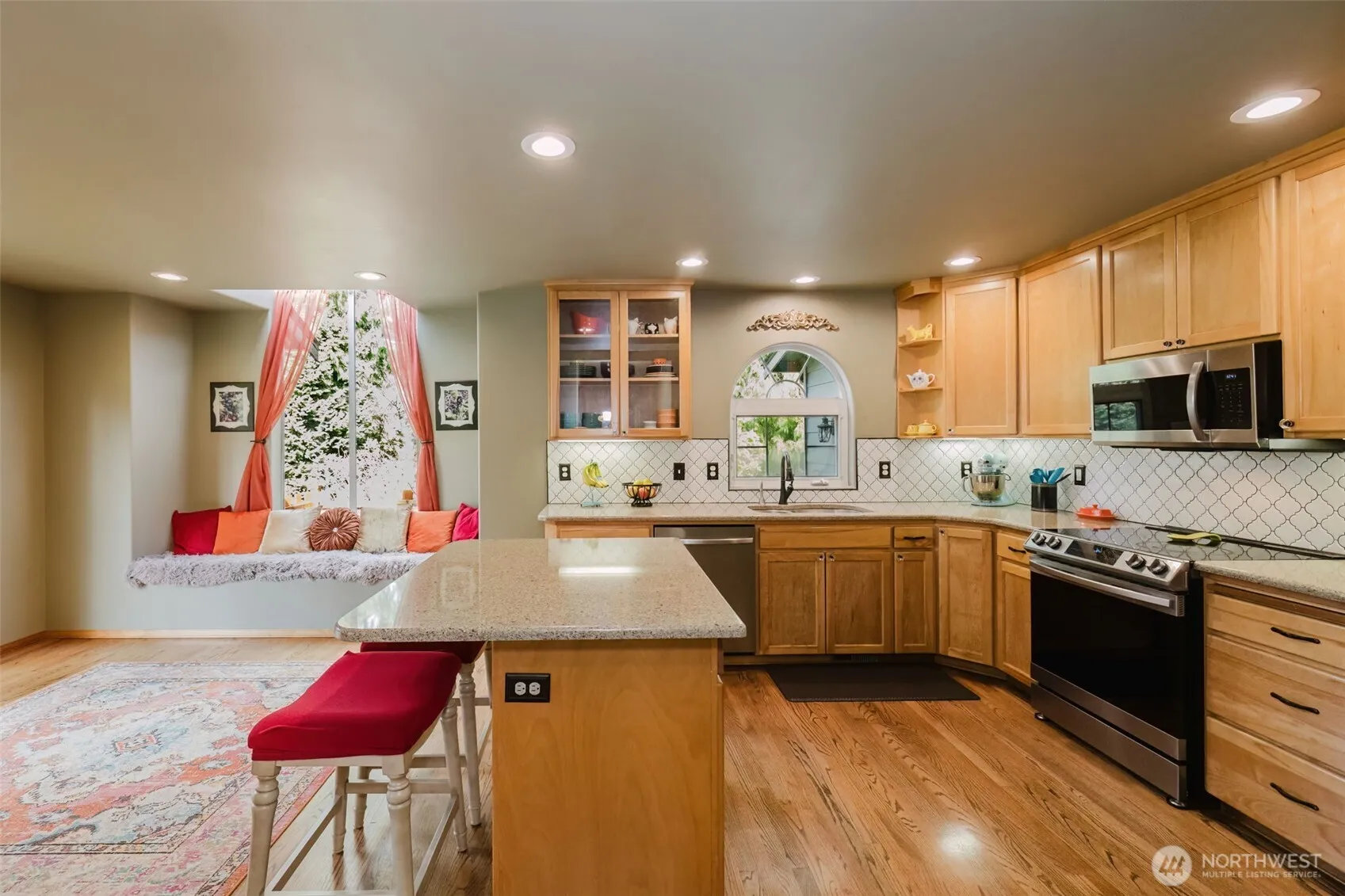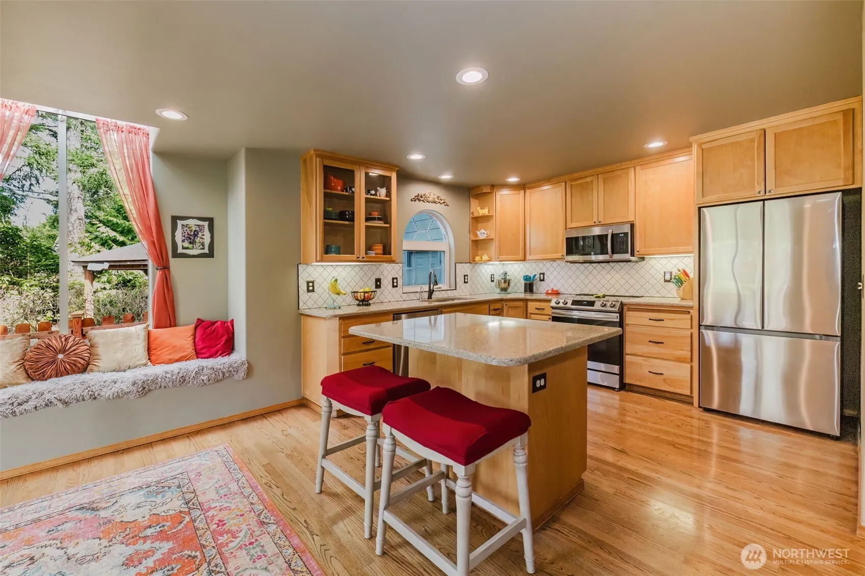 This gorgeous home is a MUST SEE! Tastefully updated with newer carpet & appliances, completely remodeled primary bath and roof just 4 years old. Spacious rooms, vaulted ceilings, home office/den and a bedroom on the main offers many possibilities. Kitchen with quartz countertops & new backsplash, coffee bar and sweet window seat to take in the views. Beautiful hardwood floors, vaulted ceilings & propane fireplace, plus an attached, spacious 3 car garage. Enjoy the golf course and wildlife from your private backyard with patio, gazebo and water feature. All situated in desirable Lakeland Village with 27-hole golf course, clubhouse & restaurant. Additional amenities include trout stocked lake, beach, parks and sport courts.