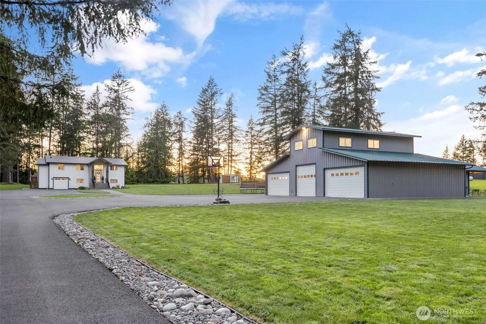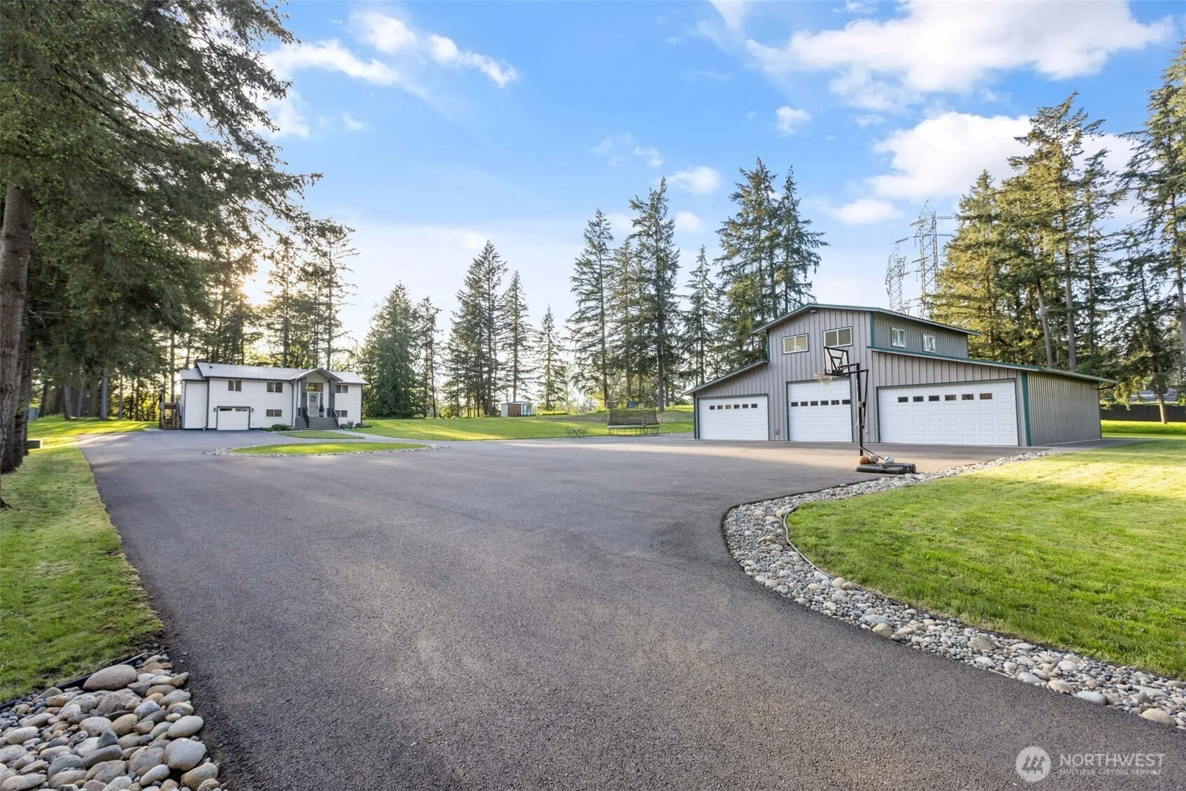 Welcome to your private retreat on 4.81 serene acres in Covington! This unique property offers two spacious living spaces for the price of one perfect for multi-generational living, rental income, or extended guests. The 1,970 sq ft main home was fully remodeled in 2021, featuring designer kitchen and high-end finishes. The second living space (1,400sqft), built above and beside the shop in 2021, includes 3 bonus rooms, 2 bathrooms, and a full kitchen. Plus, the property boasts a 2,400 sq ft shop and an 800 sq ft barn, ideal for hobbies, storage, animals, or a home-based business. A gated driveway, lush landscape, and forested surroundings complete this one-of-a-kind estate just minutes from schools, shopping, and commuter access!
