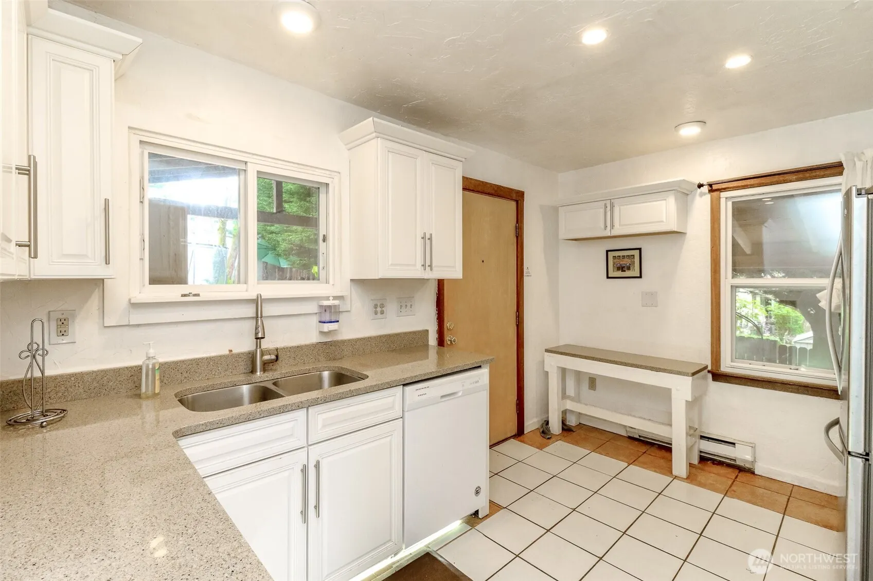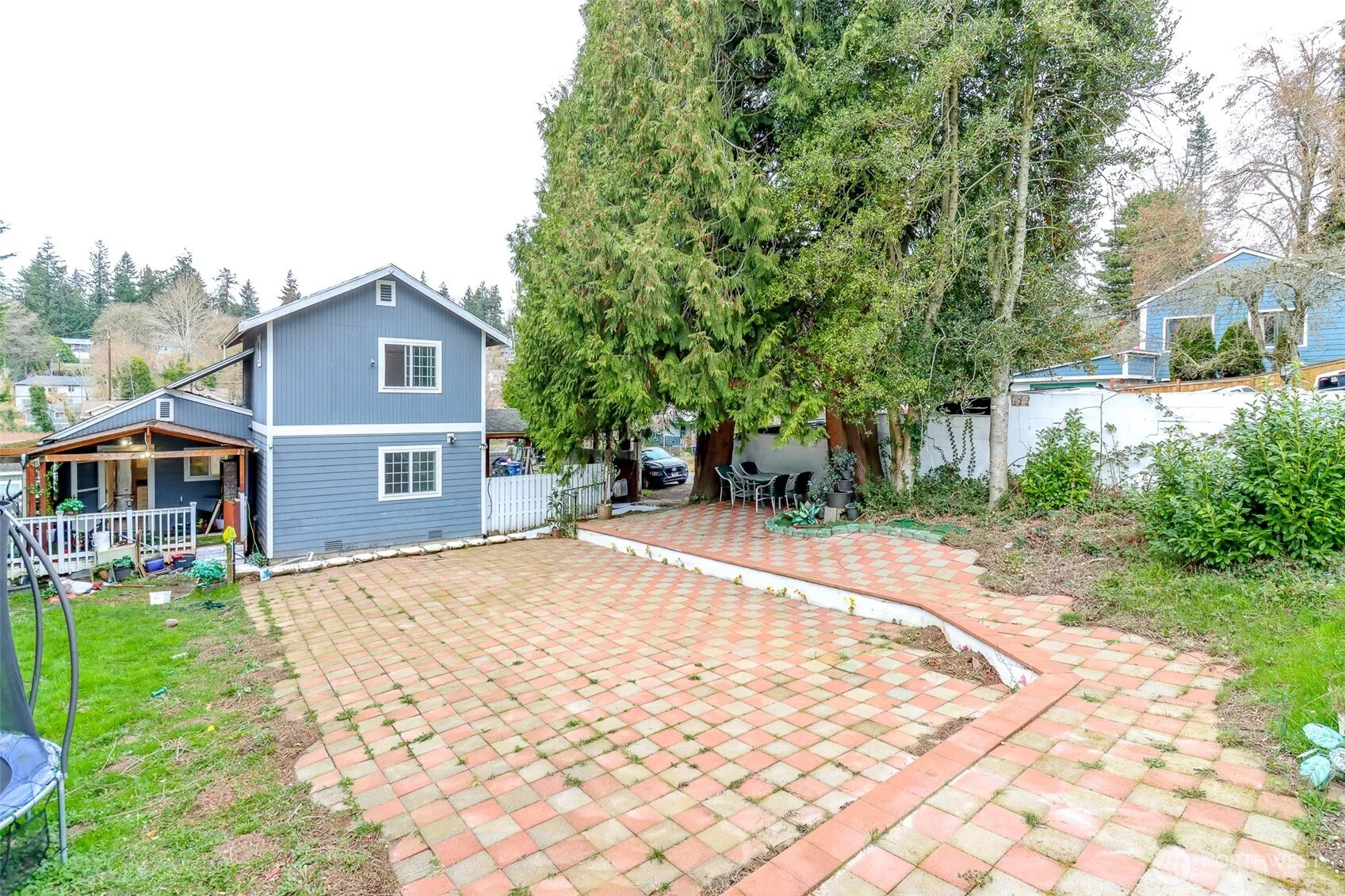 This Two-Story home, fully fenced with concrete Blocks, is perfect for generating passive income on separate entrance basement two bedrooms. located on a quiet roundabout minute from the Des Moines Marina and 10 minutes from SeaTac airport. This charming, large corner lot home provides space for an additional 900 sqft ADU unit. The newly renovated kitchen on main floor opens up to both freshly stained decks on all directions. This lot includes plenty of room for entertaining, investment opportunity, and is perfect for a green thumb. This home can be used for Airbnb upper and lower floor. Turnkey features, updated kitchen and bathroom, leveled patio. Sewer connection is within 150 feet per city report.