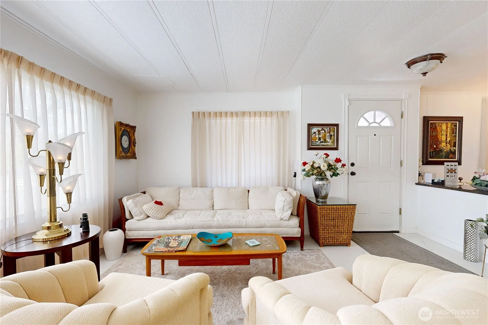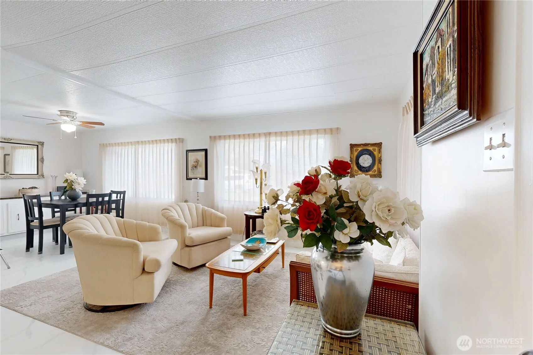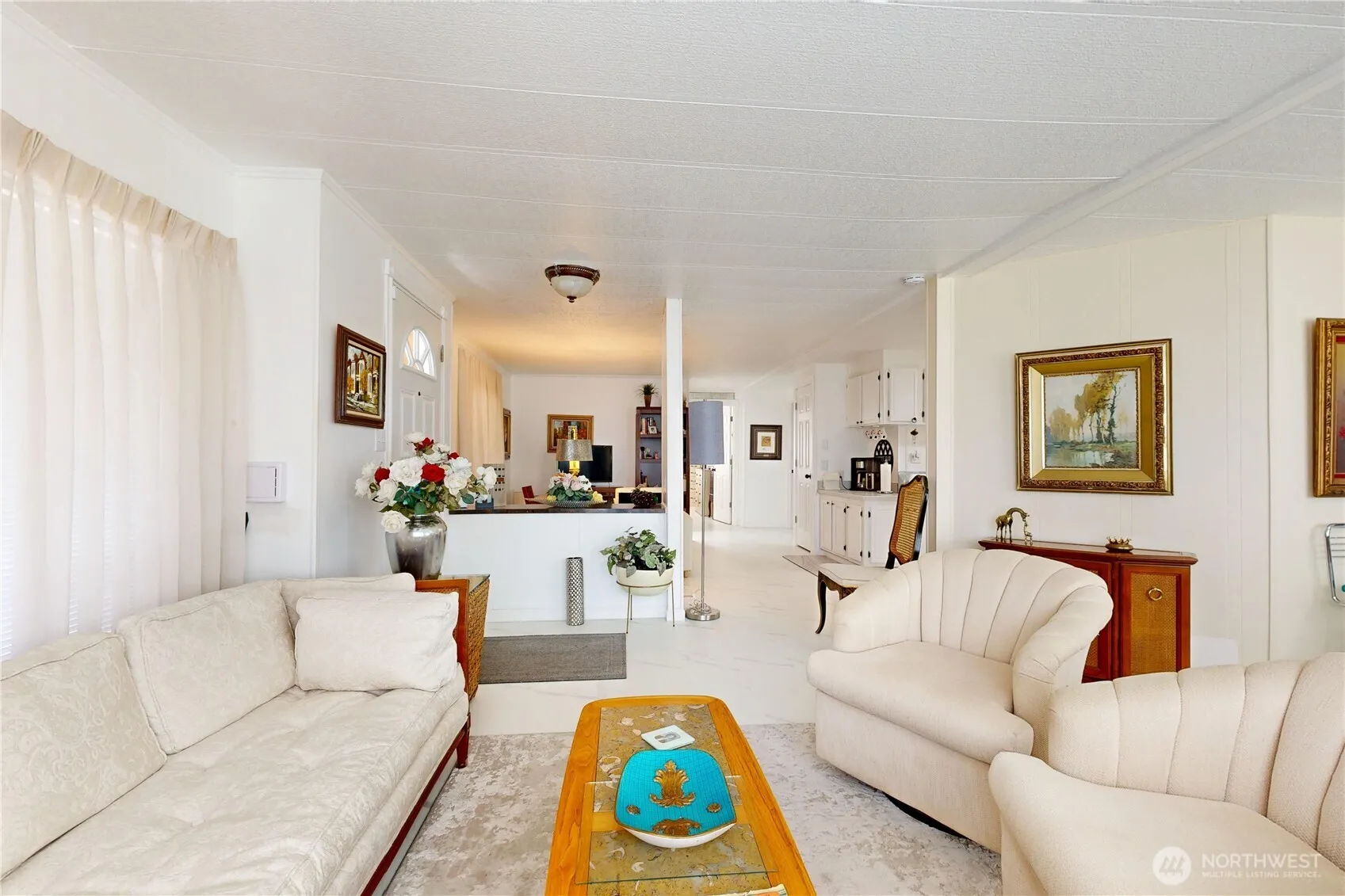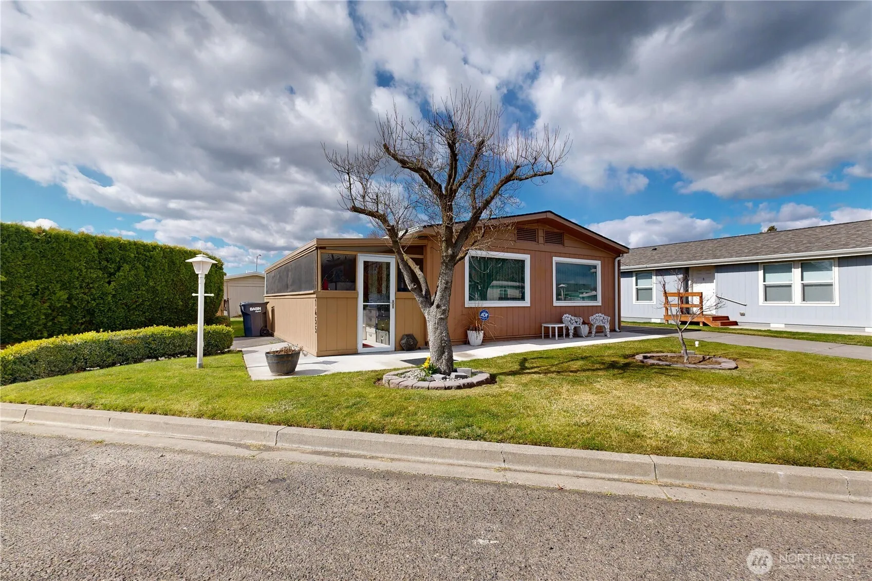 Very well kept double wide with 2 bedrooms and 2 bathrooms. Enjoy cul-de-sac location with off street parking under a carport. Screen enclosed front patio entrance. Bright living room and dining room. Family room off of living room for hobbies or TV area. Primary bedroom has connecting bathroom. There is an insulated storage building at the end of the carport. This home is in move-in condition.