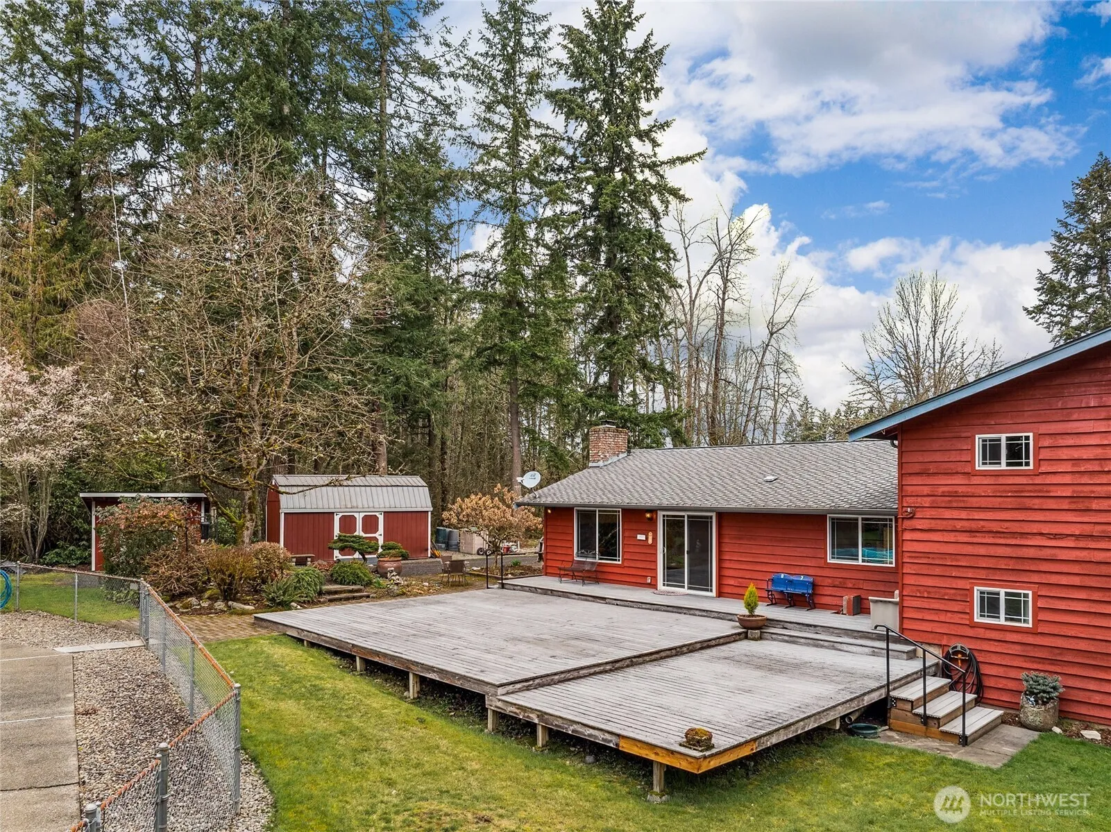 Secluded gated estate in Roy on over 12 acres. This home features 2,566 sq. ft. 3 large bedrooms, main floor office and 3 baths. Featuring an inground pool for those warm summer days, several outbuildings, huge deck and large primary suite. Private well with water filtration system. Great floorplan with main floor living and family rooms plus a large bonus room on lower level. Lots of potential to customize this amazing home. Enjoy peace & quiet in a stunning natural setting. Lots of space for boat or RV parking or maybe a detached garage/shop. Relax by the pool and enjoy all that this property has to offer including mature landscaping, towering trees and a circular driveway. Newer 50 year roof, newer furnace and updated vinyl windows.