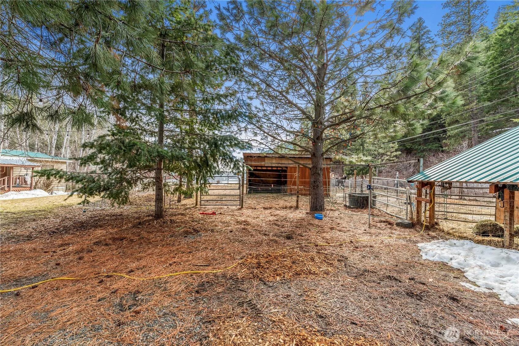 FINANCING NOW AVAILABLE & NEW ROOF! Nestled just 6.9 miles from Leavenworth, this gated, fully fenced property offers privacy, tranquility, and endless possibilities. A creek runs through the flat parcel, providing irrigation, while the horse corral and multiple outbuildings make it ideal for storage, hobbies/workshop. The manufactured home is situated so you could live in the home, while you build. Relax in the hot tub and enjoy the peaceful surroundings. A gravel driveway ensures easy access. Value is in the land—don’t miss this unique opportunity!