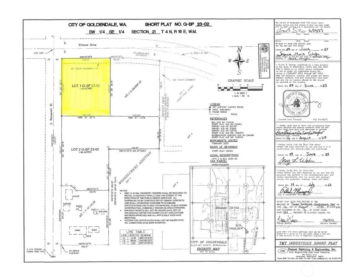 PRIME Highway Commercial Land on corner of E Simcoe Dr & S Roosevelt Ave in Goldendale, WA. Dollar General store borders property on the East side with other businesses nearby: McDonalds, Papa Johns, Ayutla’s Mexican Restaurant, Quality Inn & Suites and Chevron gas station. Easy access to Hwy 97 where E Simcoe Dr T-bones into Hwy 97. Property ideal for Retail, Auto, WSR, Office, etc. Buyers to do their own Due Diligence. Please email Admin@BradleyKingCRE.com for additional Buyer information including Developers Package.