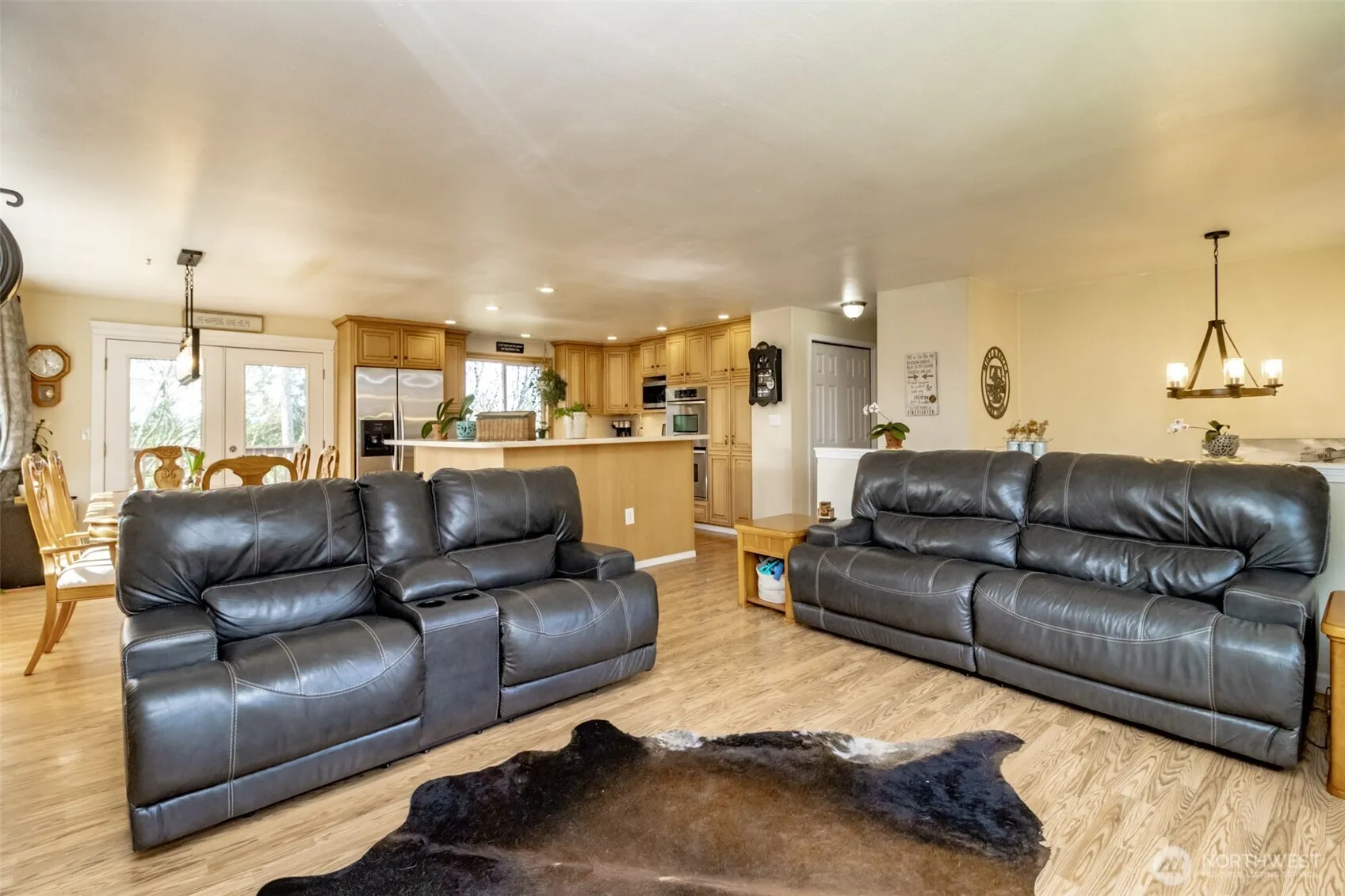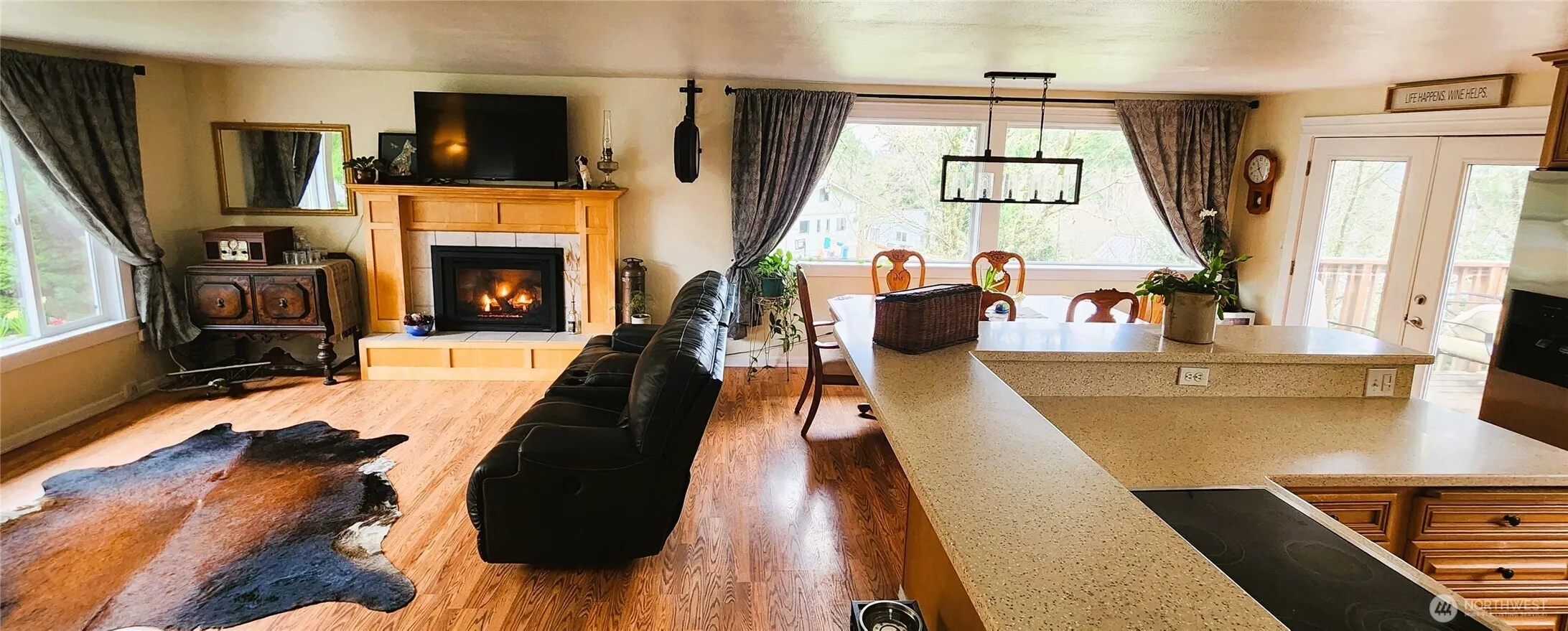 PRICED TO SELL! Beautifully maintained 4-bedroom home with two spacious living areas and a den on over half an acre! Recent updates include a NEW roof, plywood and insulation (22)! Fresh interior/exterior paint, NEW LVP flooring and 25-year warranty carpet! NEW modern interior and exterior lighting. New appliances! Open-concept kitchen w/ a wraparound eating bar perfect for entertaining. Primary suite offers a luxurious rain shower and NEW glass door. Upstairs includes a great room, 3 bdrms and 2 baths; the lower level offers a family room w/ bunus area and patio access, an additional bedroom, office, and laundry/half bath combo. Cozy propane inserts on both levels, RV parking, a NEW shed, and unfinished storage space complete the package.