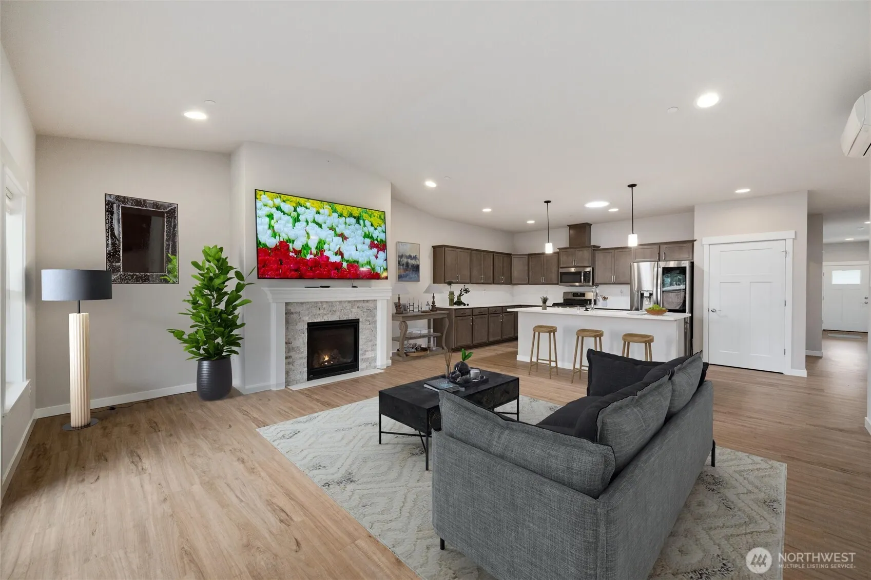 Check out this beautiful home available in the Brickyard Park 55+ community that I think you’ll love. It’s got 1712 sq ft of space, w/2 large bedrooms,a den,and 1.75 bathrooms. Feels just like new with fresh carpet & LVP flooring throughout.You’ll enjoy the open concept great room w/a cozy gas fireplace, the kitchen and bathrooms feature lovely quartz countertops. Plus, the stainless steel appliances are like new and stay with the home. There’s also a heat pump with mini splits for both heating and AC, which is a great bonus!The home comes with a covered rear patio, a fenced yard, and a 2-car insulated garage. The community itself is peaceful, with a clubhouse, park, pickleball court, horseshoe pits, and walkable trails with mountain views.