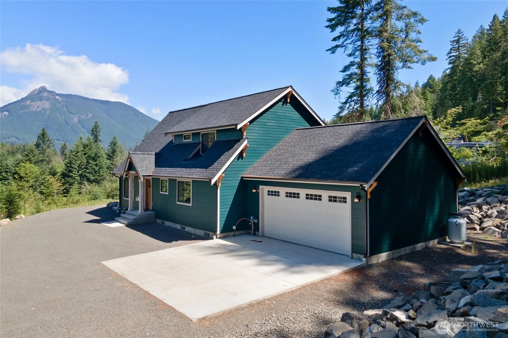 Enjoy breathtaking views of Mount Rainier and the National Forest from this well-built Packwood cabin! Whether for a getaway or full-time residence, the main floor boasts high ceilings, a cozy gas fireplace, and a gourmet kitchen with custom cabinetry and high-end appliances—all with a perfect view of Mt. Rainier. Upstairs, the primary suite features a luxurious private en-suite and spacious walk-in closet. Each room includes a mini-split heat pump for efficient heating and cooling. Located in a gated, low-density community backing onto National Forest land, offering long-term privacy yet close to downtown Packwood amenities and hiking adventures. Don’t miss this fantastic opportunity!
