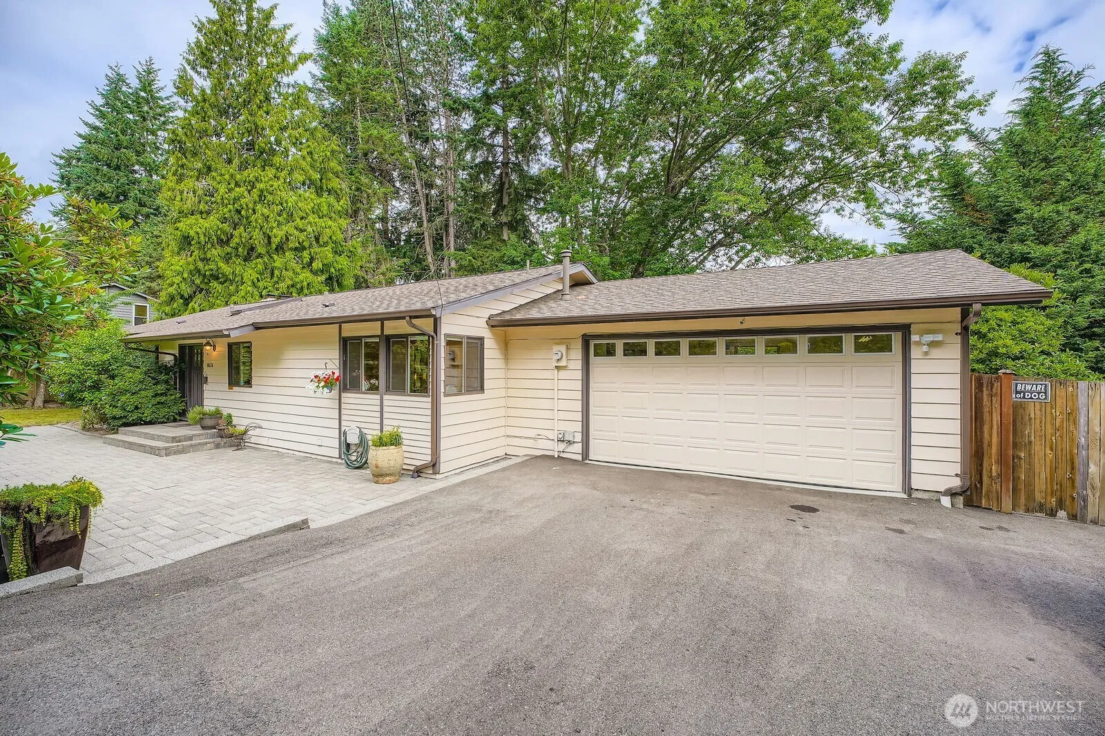 Stunning Rambler with finished daylight basement, located in Quinault Estates. Nestled on the end of quiet dead end road, steps from Wayne park blocks away from Burke Gilman trail. Highly sought after Northshore School District. Home is surprisingly large. Great for entertaining w/wet bar. Vaulted ceilings, spacious layout, lots of natural light! Cozy living room with updated, floor to ceiling custom brick Fireplace. Kitchen boasts Quartz counter tops. Brick court yard in front w/expansive deck in back. Lots of privacy! 2025 new Roof, Attic insulation, Gutters w/leaf guards and downspouts. All new windows and multiple interior doors throughout. Location has easy freeway and snow access in winter.