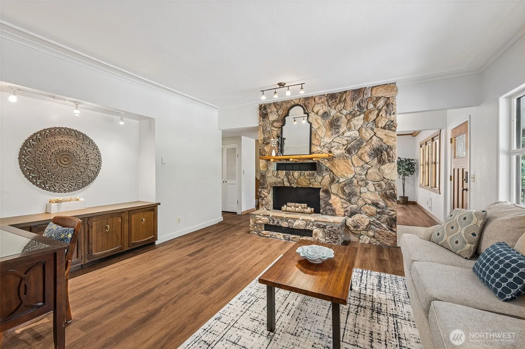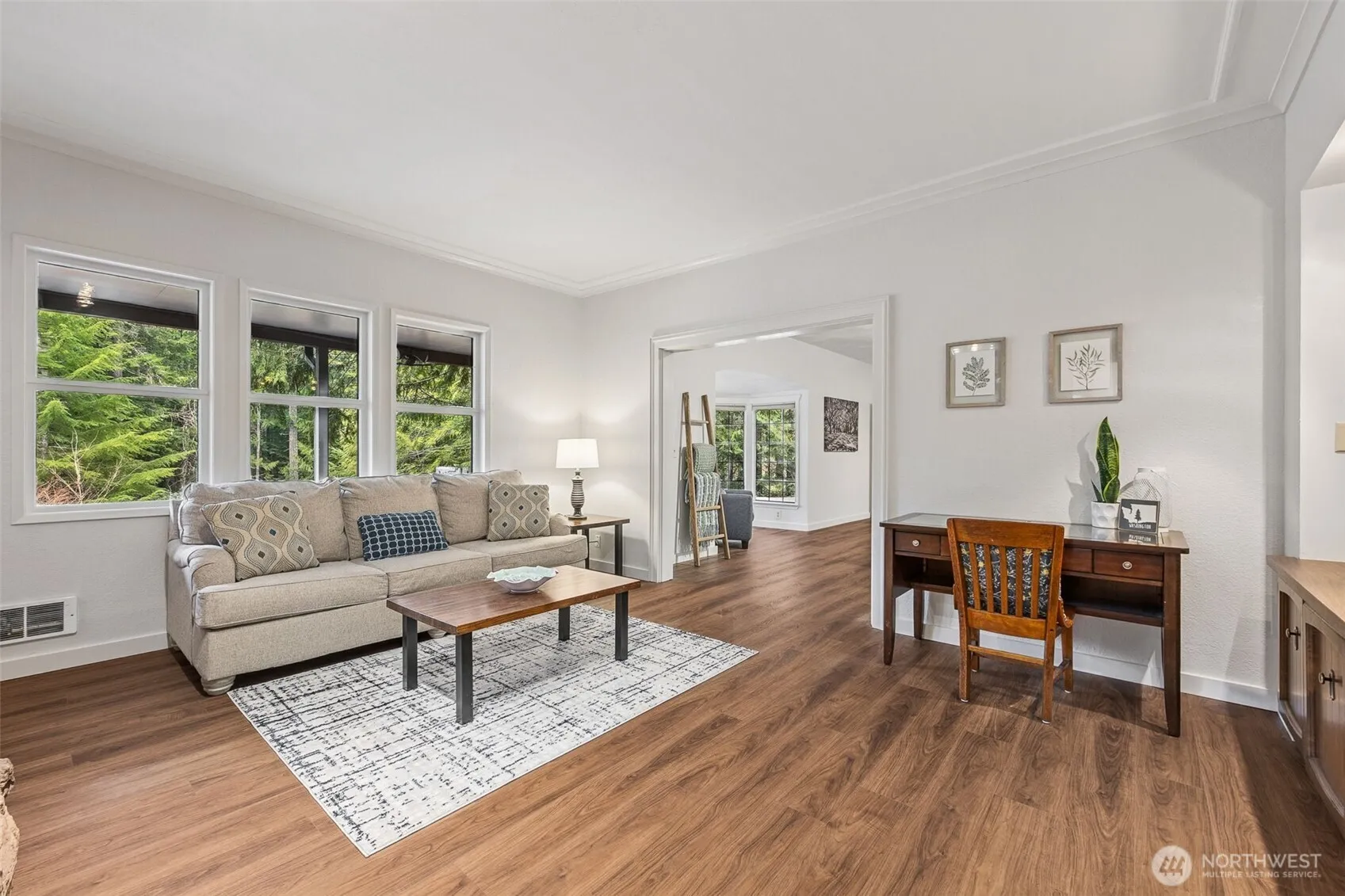 Escape to this beautifully maintained 3-bed retreat at Lake Cushman! Nestled on a double lot, this wooded oasis is perfect for entertaining and relaxing. Enjoy the charming front porch, expansive deck, or backyard pergola. Inside, the large family room with pellet stove offers warmth & comfort. The kitchen is great for casual meals, while the formal dining room, with exposed wood beams & fireplace, adds elegance. A main-floor bed & bath provide convenience, while upstairs, additional beds include a private en suite. The garage, garden, and sheds adds function. Community perks include lakes, boat ramps, parks, golf, sport courts, security, and year-round maintenance. New LVP flooring, carpet, and fresh paint on the main floor!