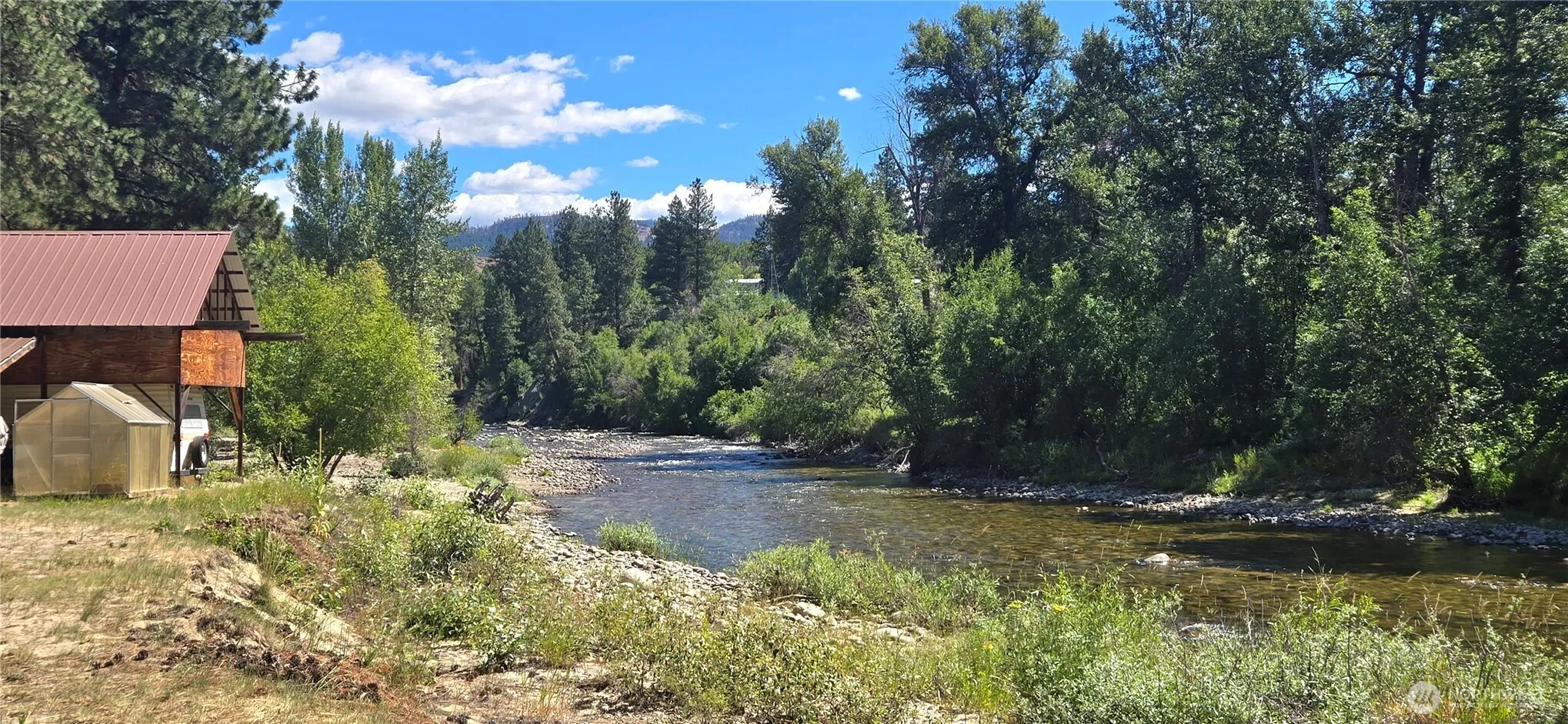 Discover this rare riverfront retreat in the beautiful North Cascades city of Winthrop! Just minutes from town, and at the end of a private road on the Chewuch River. Established cabin-like home features 2 bedrooms and a 3/4 bath, as well as a separate exterior 3/4 bathroom & laundry room.The property is mostly level and on two lots totaling 1.35 acres. A 3-bdrm septic system provides room for expansion & all the essential services onsite, make it ready for you to build your custom riverfront home! Outdoor entertainment area, gazebo, and abundant recreation and wildlife. Additionally, there are 2 extra power/water hookups for RVs, along with one established dry RV site at the river’s edge. Don’t miss out on this opportunity!