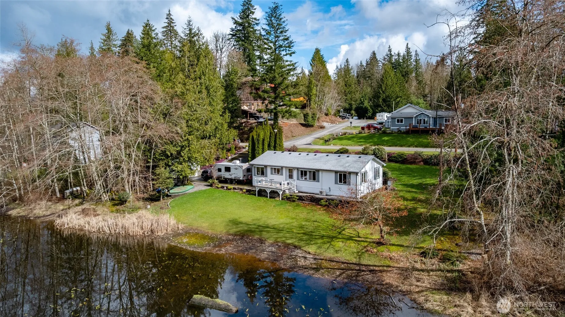 Lake life at its finest! ½ acre + on Reed Lake. Beautifully landscaped, park like setting. Imagine fishing, bird watching and roasting marshmallows around the firepit all from your own private backyard. 2 outdoor sheds for storage and extra storage under deck. 3 bedroom 2 bath home with open floor plan, large eat in kitchen with newer appliances. Large primary bedroom with en suite. Home has a/c for those hot summer days. Roof is 5 years old. Stair or ramp entry into house. 5 minutes to I-5 and 15 minutes to Bellingham or Mount Vernon. Enjoy all the amenities that Glenhaven has to offer, seasonal pool, clubhouse, tennis court and stocked lake for fishing.