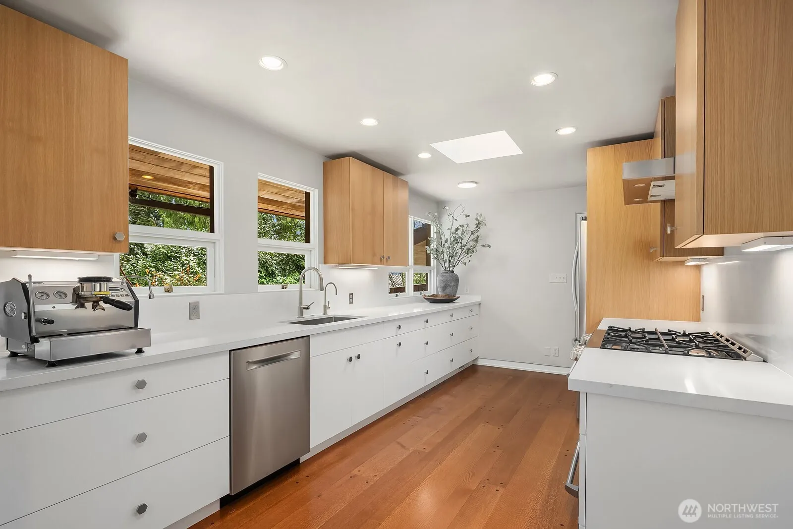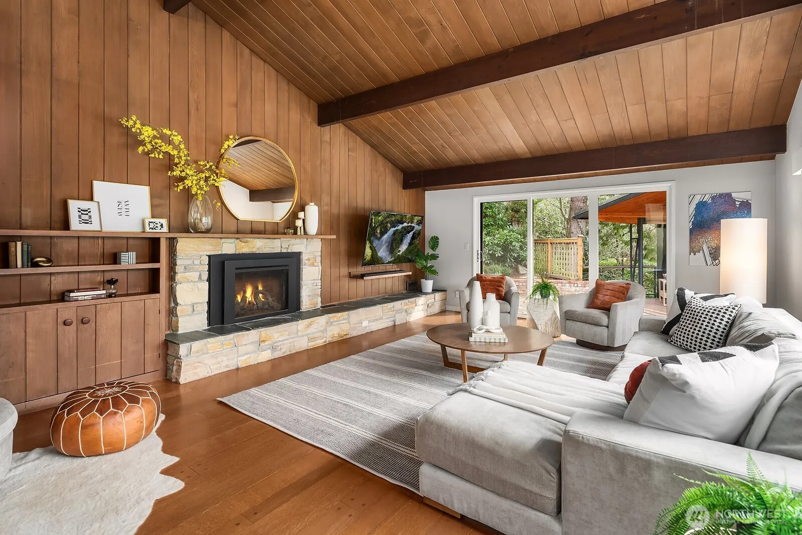 Nestled in Mercer Island’s coveted Boulevard Place neighborhood, this captivating mid-century home offers style, serenity and a seamless connection to the surrounding natural landscape. Step inside & discover a perfect blend of stunning original design and thoughtful updates & upgrades throughout. Enjoy warm hardwoods, vaulted ceilings & walls of windows. Peaceful primary suite + 2 more spacious bedrooms + versatile den/office with built-in wall bed. Amazing outdoor space overlooks natural creek bed below. Flagstone patio extends to expansive deck with covered living area, built-in tv center, fire pit, grill & buffet cabinet w/ mini fridge. Launch your paddle board or go for a swim at Franklin landing – a short stroll away. This is the one!