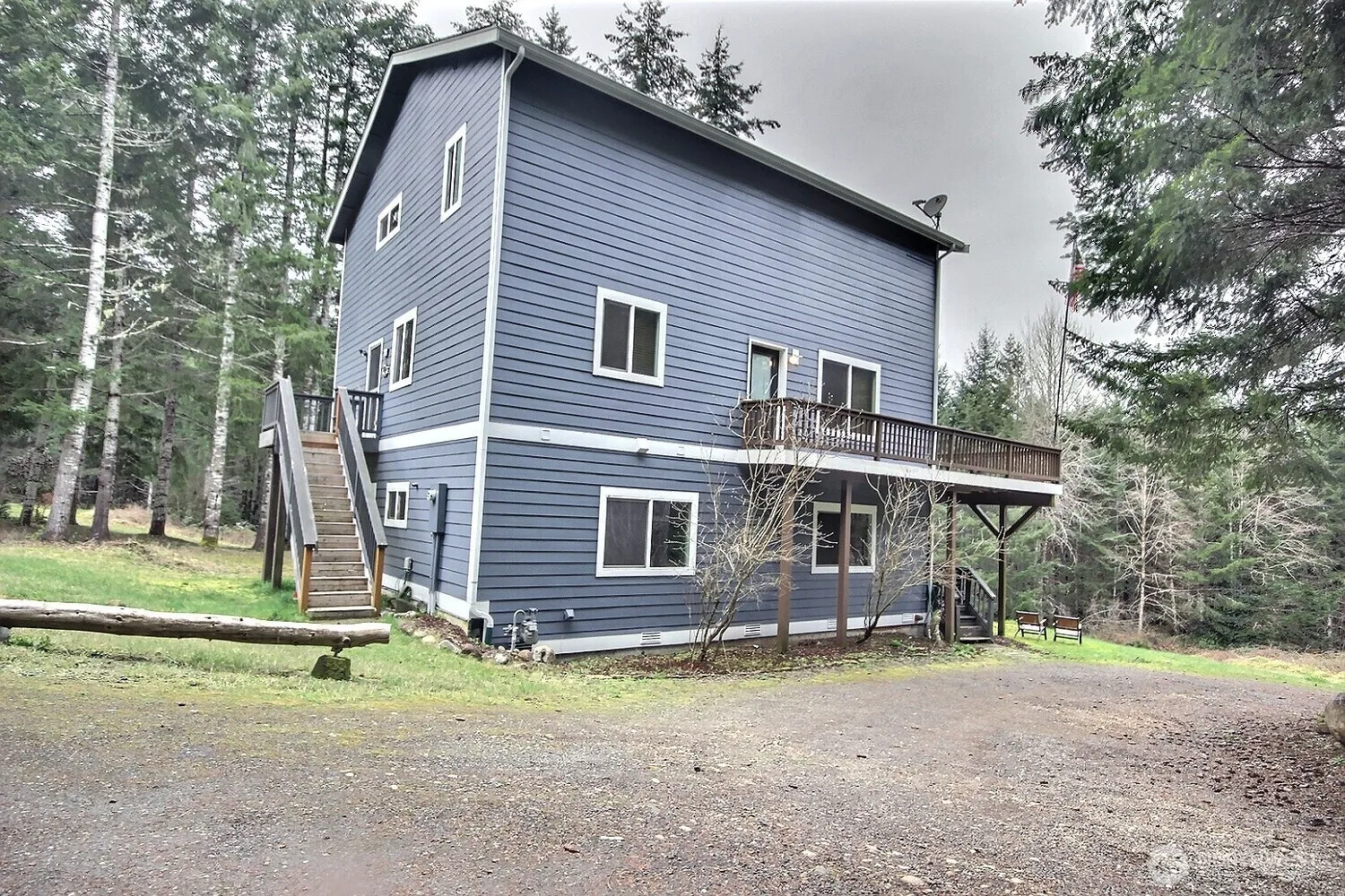 Custom-Built Chalet on 5 Acres Near Hood Canal This stunning home offers 5 acres of privacy, a spacious 2,400 SF shop with a paint booth, and peek-a-boo views of the Olympic Mountains. Inside, enjoy soaring vaulted ceilings, abundant natural light, and recent updates including newer kitchen appliances and engineered hardwoods. With a 50-year roof and exterior paint done in 2022, this property is move-in ready. Freshly graveled driveway to approach the home. Conveniently located near Trails End and Mason Lakes and just a few minutes to town, this home is a must-see!