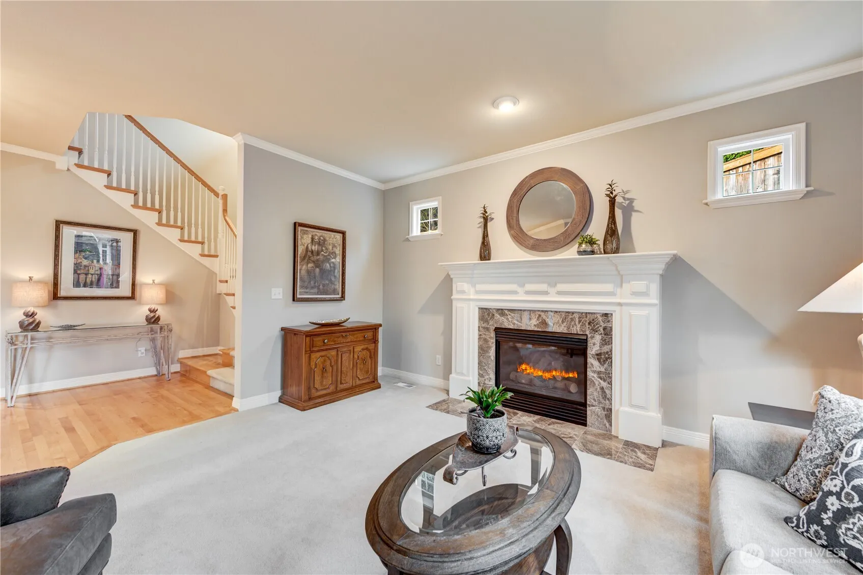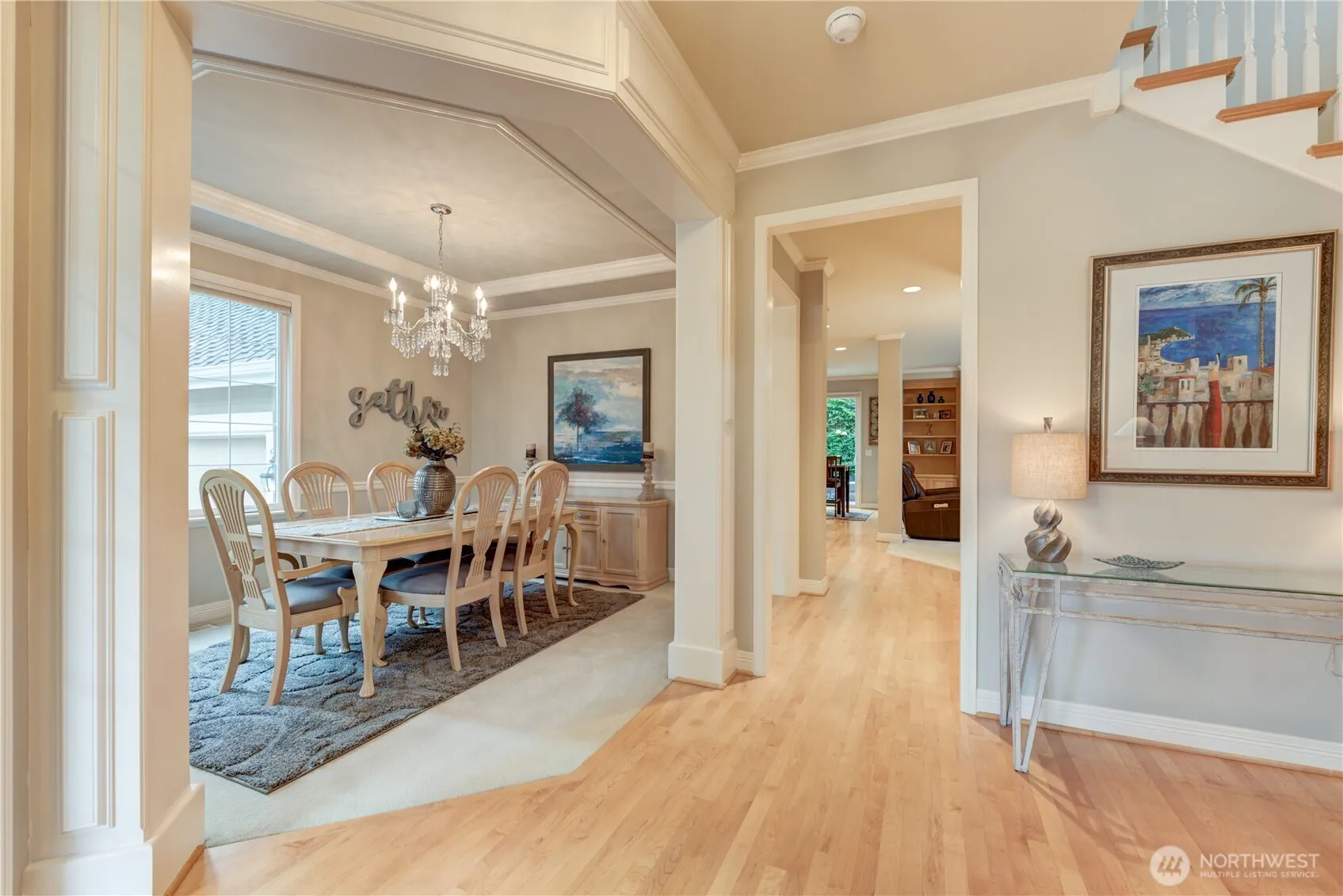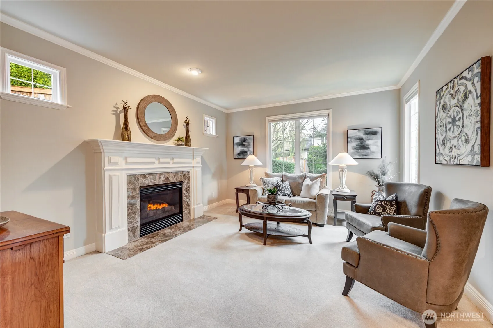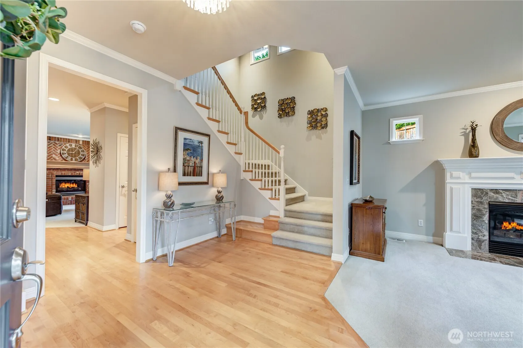 Stellar Community of River Crossing & Exceptional Construction by Buchan Homes. Just a walk away from Mill Creek Town Center w/all its amenities. Highlights include cul-de-sac location, fabulous floor plan, gorgeous updated kitchen w/granite countertops, double ovens, center island, updated dark ss appl, solid hrdwd floors, breakfast nook & pantry. Extensive crown molding. Coffered ceiling in din rm. Fam rm w/2 gas frplc, built-n shelving & French Doors to professionally landscaped yard w/several patio spaces for entertaining. Hot tub & garden shed. Primary suite w/elegant coffered ceiling, 5-piece bath & walk-in closet. Large bonus room w/closet. New water heater. 50 yr roof 2021. Fabulous & manicured neighborhood. Great Mill Creek Schools