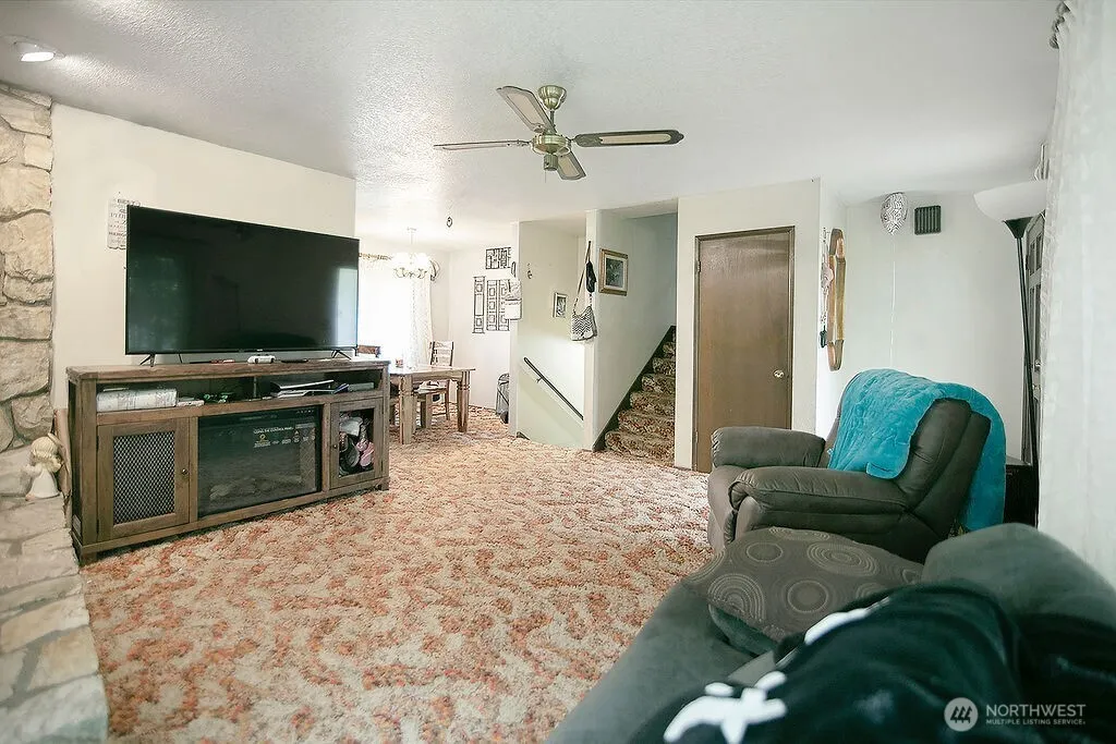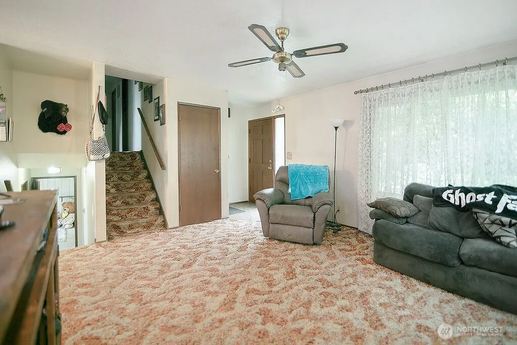 KALAMA — Private & Secluded — 2.63 Acres — 2 Creeks on Property — 3 Bedroom / 1 Bathroom — 1680 Sqft — Living Room w/ Fireplace — Kitchen w/ Stainless Appliances — Dining Room — Primary Bedroom w/ Jack & Jill Access to Bathroom — Rec / Family Room — Laundry Room — Heat Pump & A/C — Vinyl Windows — Plumbed for 2nd Bathroom — Double Attached Garage — Deck — RV Parking — Garden Space — Trees — Detached Carport — Small Shop / Shed w/ Power — Less than 45 Minute Commute to Vancouver/PDX