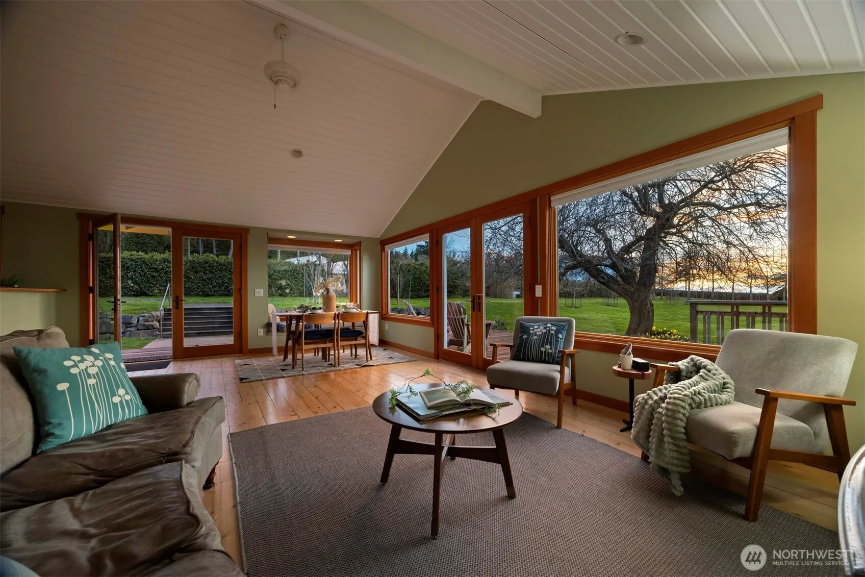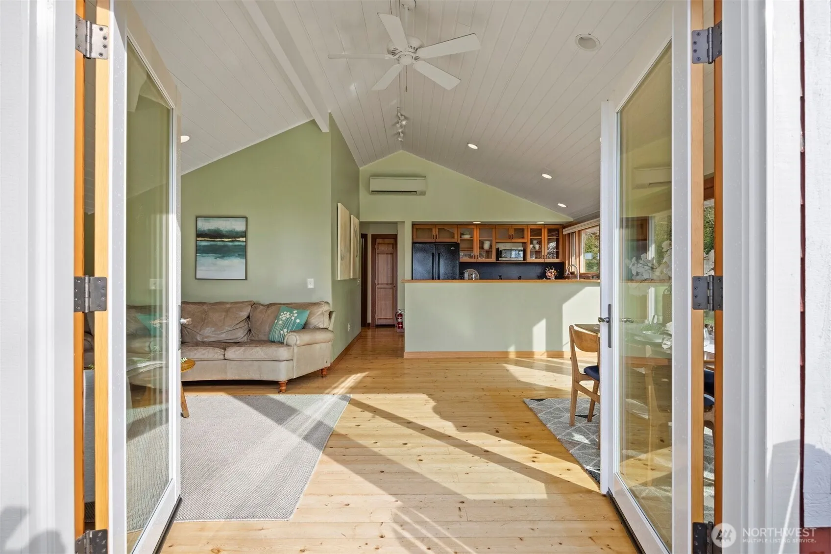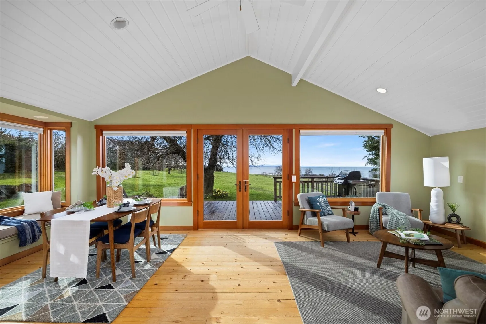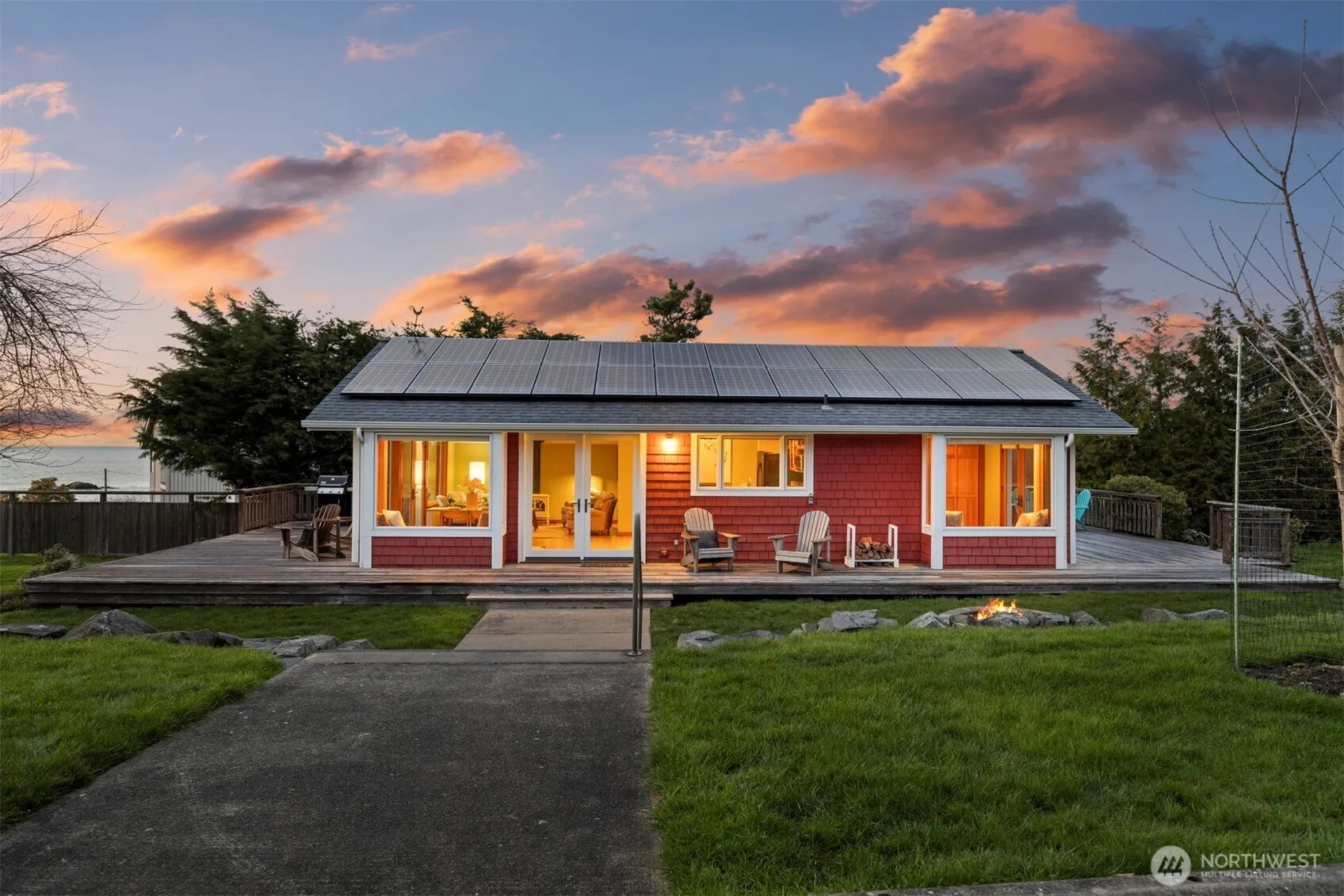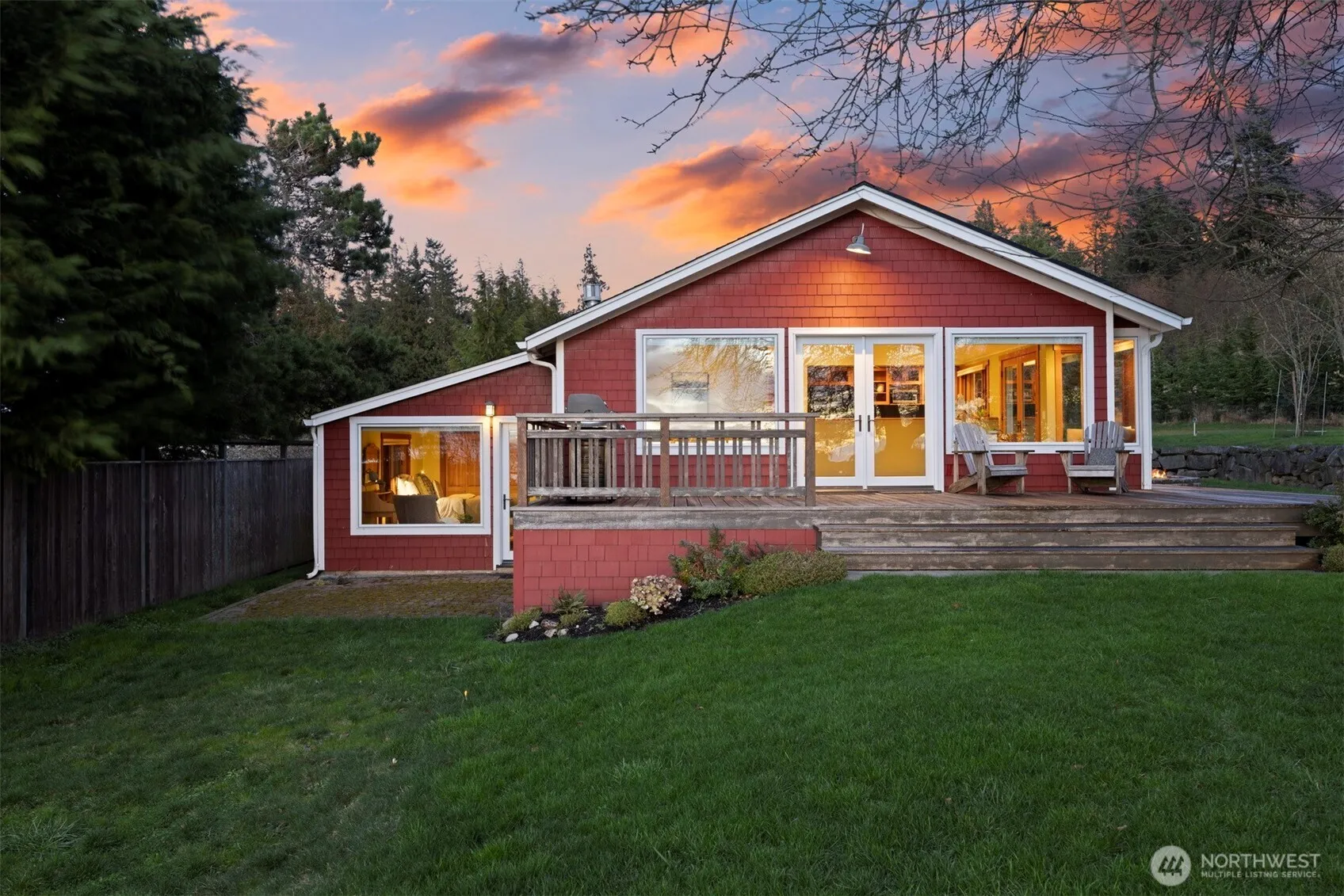 Discover a rare waterfront retreat with a private sandy beach and owned tidelands. This unique property features two separate homes—a green home with a sleeping loft and a charming red house complete with solar and three bedrooms and one bathroom. Perfect for guests! The lush landscape boasts a linear orchard, new raised garden beds, and a variety of fruit trees, including quince, apple, cherry, plum, peach, and two walnut trees with a total of 22 fruit trees. With garden irrigation and space to grow, this property is a gardener’s paradise. Each home has its own well and septic. Enjoy nature, sustainability, and the best of waterfront living!