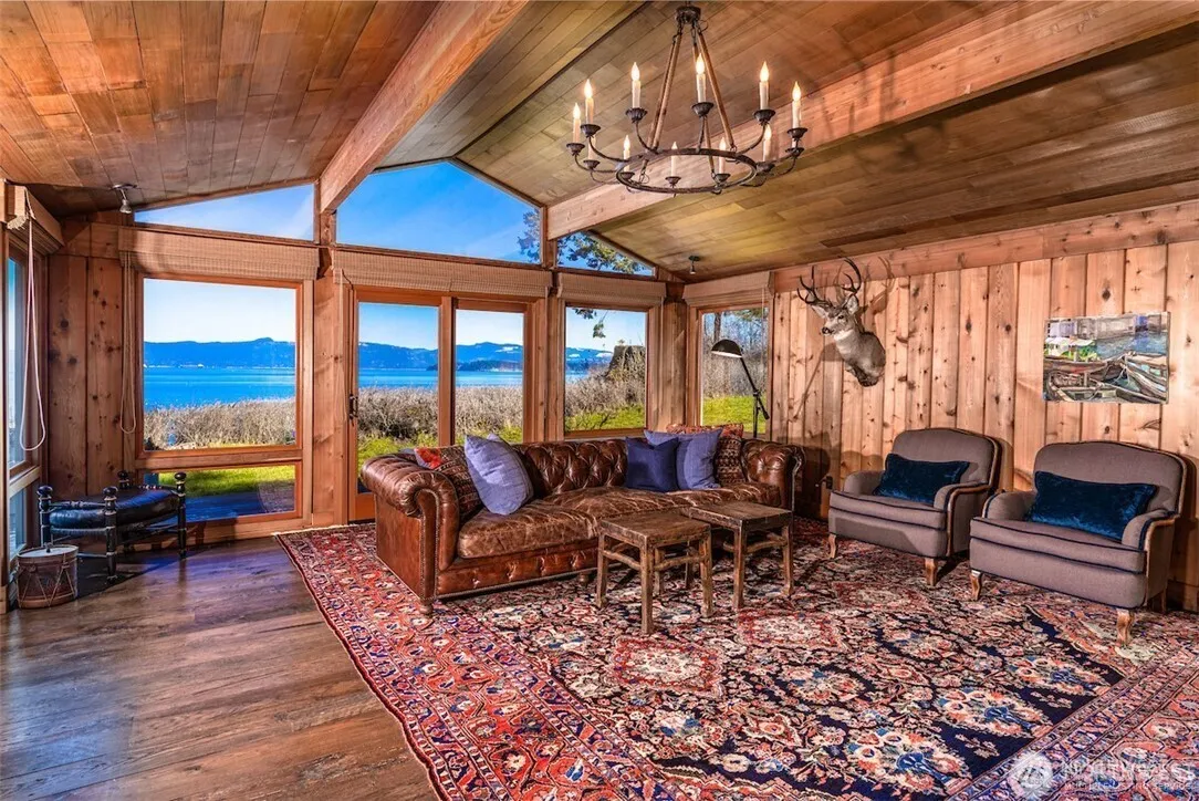 Step through the gates and into a world of unparalleled beauty at 5837 Ambleside Loop. This extraordinary estate spans over 65 acres of protected and open land on Guemes Island, the southernmost of the San Juan Islands. Redefining waterfront living, the property boasts over 1,664 feet of private shoreline, a charming 2,068-square-foot, three-bedroom cabin, and six approved one-acre waterfront lots. Whether as a private retreat or an investment in an exclusive lifestyle, this stunning estate offers a rare opportunity to make every day feel like a vacation. A rare offering to escape to nature, the water, and the calm and quiet of your private Island home. Northern vistas of Padilla Bay and Mt. Baker sparkle from this rare waterfront property.