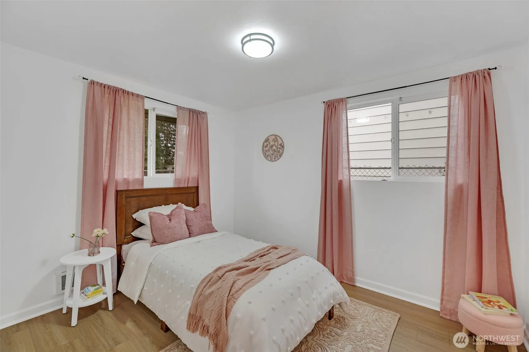 Perched on a spacious corner lot, this updated 2 bed, 1 bath home blends modern comfort with endless potential. Step inside to a bright & inviting living space, freshly repainted with new light fixtures throughout. Large windows bring in natural light, highlighting the brand-new flooring, stylish finishes, & cozy wood-burning fireplace. The refreshed kitchen features new appliances, a farmhouse sink, quartz countertops & new hardware. Both bedrooms are well-sized & the full bath has been modernized with new fixtures & lighting. Outside a fully fenced yard offers space to relax or expand-DADU potential! Lots of off-street parking & easy access to highways, transit, light rail, Southcenter, Angle Lake & the airport make this a prime location!