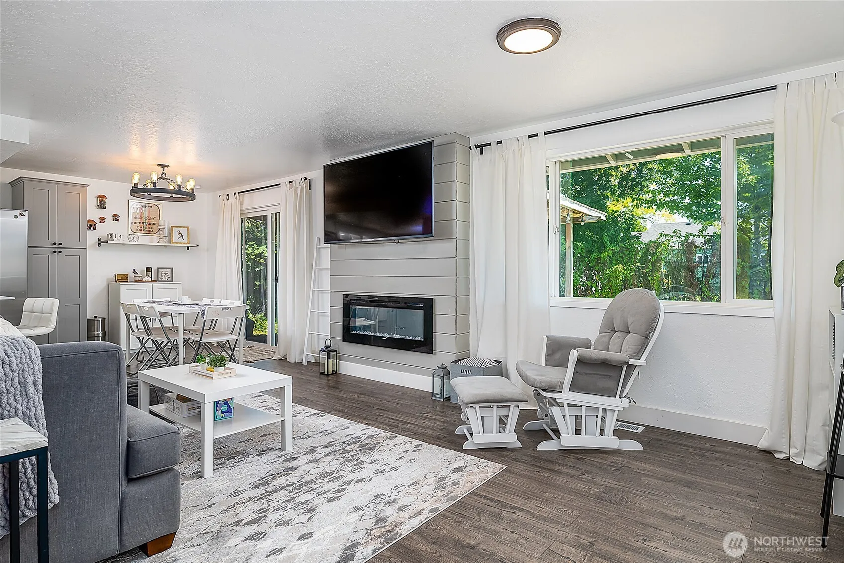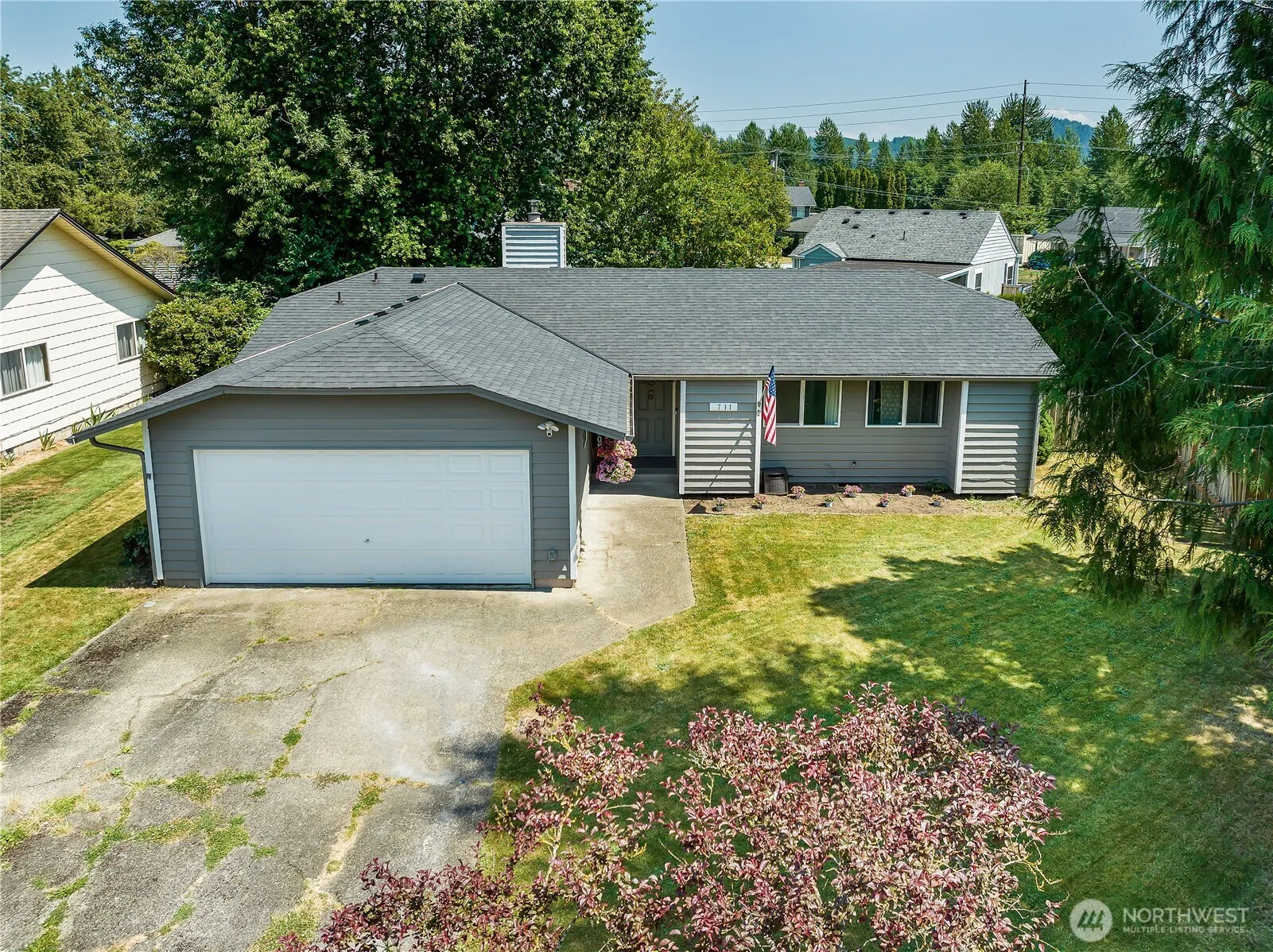 Charming 3-bedroom rambler offers open circular floorplan blending living space to maximize comfort. Spacious living room featuring cozy fireplace, perfect for chilly evenings. Adjoining dining area & kitchen w/ breakfast bar create an inviting gathering space. Updated kitchen & bathrooms render designer touches & modern features. New laminate hardwood flooring adds a touch of style throughout. Enjoy views of Mt. Rainier from the comfort of your living room or step outside to the large, level, fenced backyard featuring covered deck, ideal for unwinding or hosting guests and brimming with possibilities for an imaginative gardener. Nestled on quiet cut-de-sac, conveniently close to downtown Enumclaw. 2-car garage, Central A/C, and more