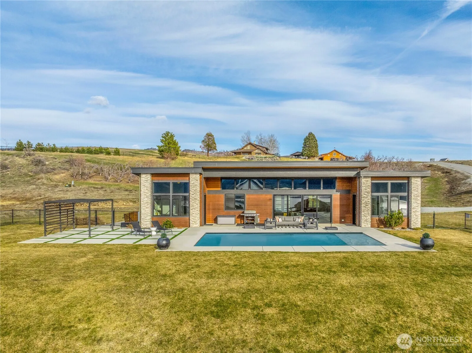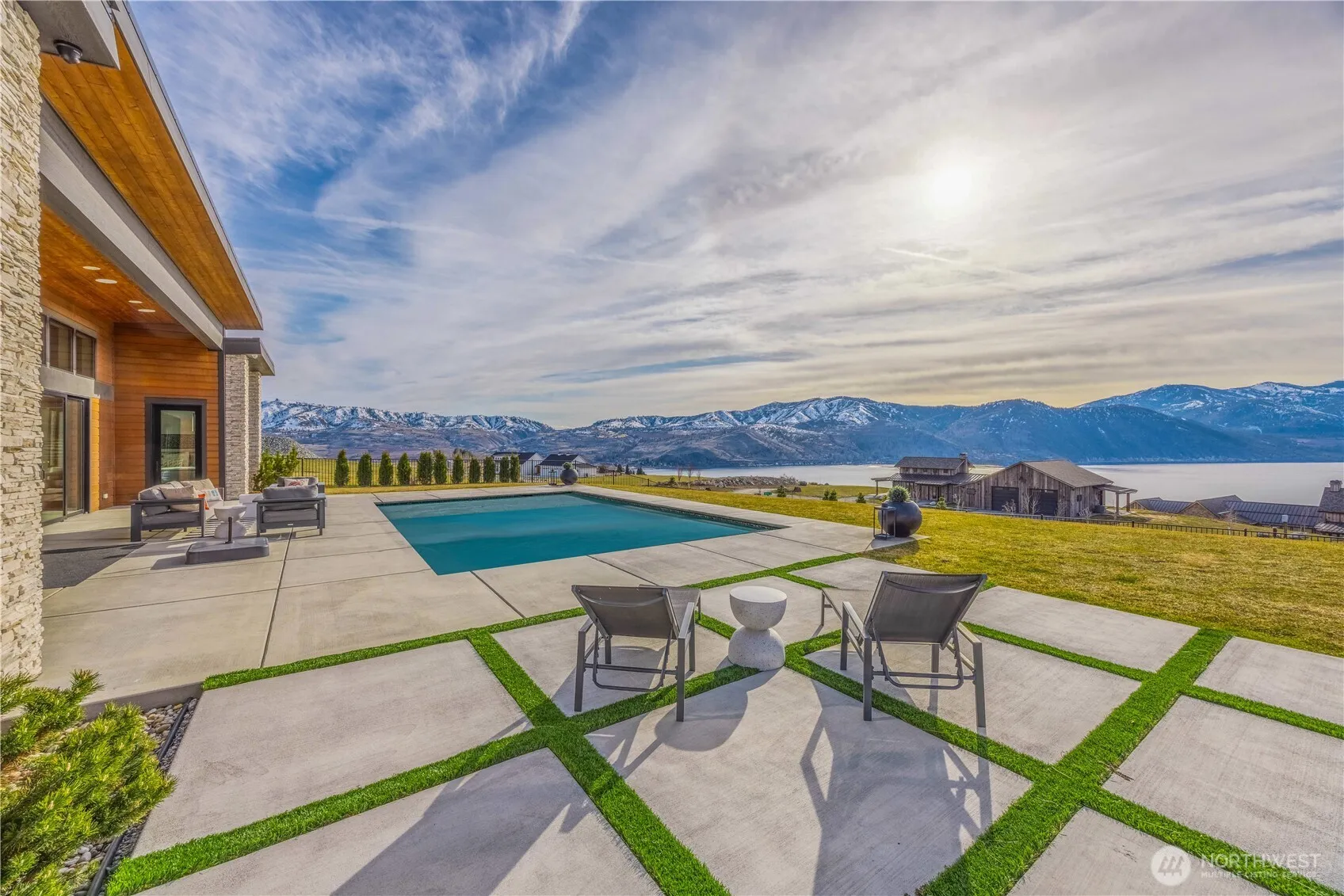 Perched above Lake Chelan in the 13-residence enclave of The Reserve, this custom 2018-built home is a showcase of contemporary design and natural beauty. Set on 4.3 acres of irrigable land, the property offers dynamic lake and mountain views from nearly every room. Inside, soaring ceilings, wide-plank hardwoods, and a large steel beam accent frames the open-concept layout centered around a stunning chef’s kitchen with a grand quartz island. Floor-to-ceiling windows flood the home with natural light and seamlessly connect indoor and outdoor living to the Gunite-concrete pool and expansive patios for entertaining and relaxing in utter privacy. The sale of this property, STR# 000485, will transfer with the Vacation Rental Permit.