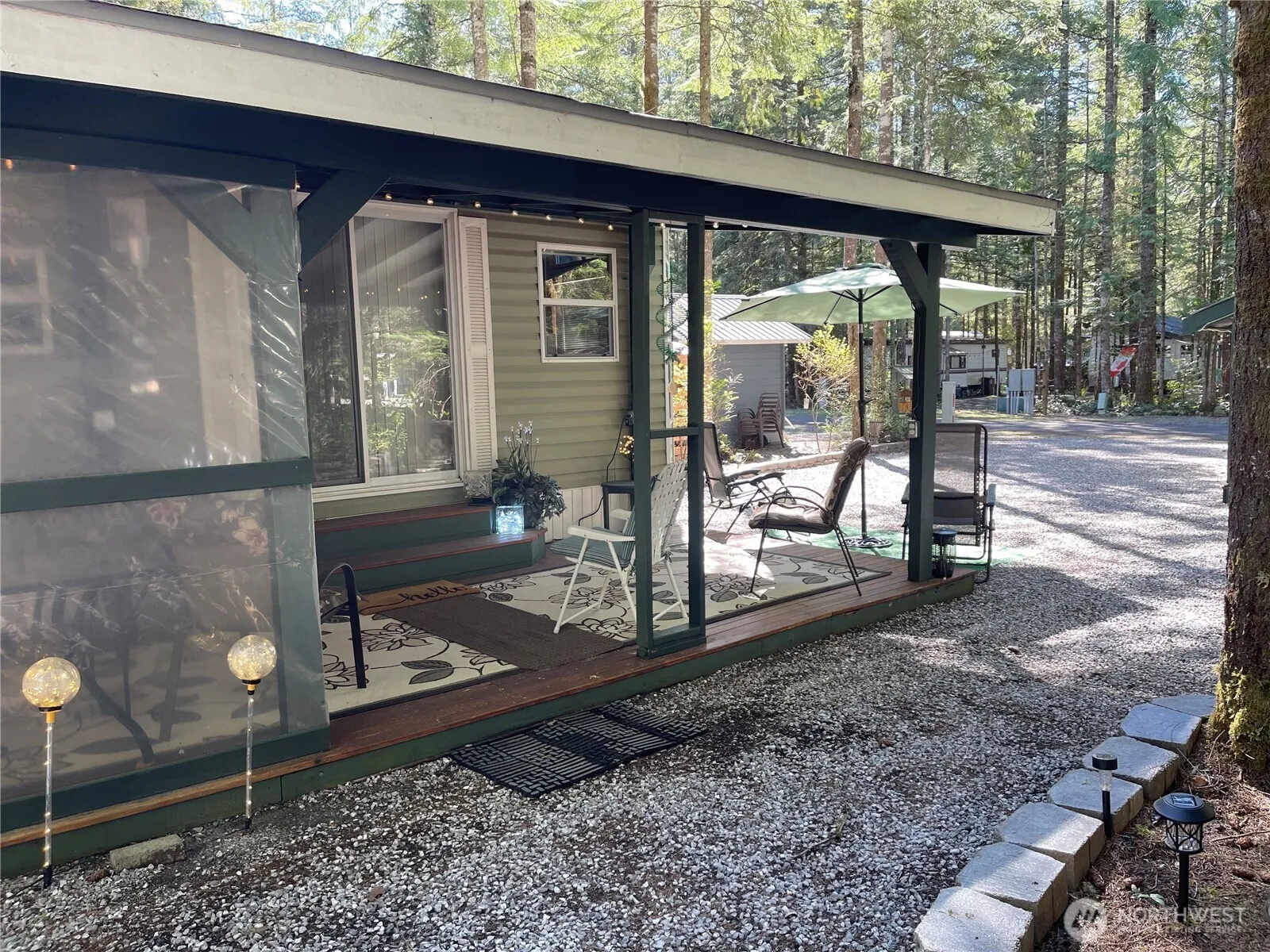 A great opportunity at The Glen at Maple Falls! This ’08 Breckenridge Park Model is in great condition. The lot is nice and level, graveled, and awaiting you and your ideas! Has a covered porch to keep you dry if it’s raining. Shed in front in great condition. Fire pit area in back. The lot gets plenty of sun. Primary bedroom in back and has hide-a-bed in front w/privacy curtain for guests. Almost everything stays! The Glen has 2 pools, hot tub, sauna, 2 clubhouses, family center, library, tennis courts, laundry facilities, river access, playgrounds, trails, 24/7 security w/ gated entrance, and so much more! Located minutes from Mt. Baker. The Glen is zoned rec for 120 days use per year.