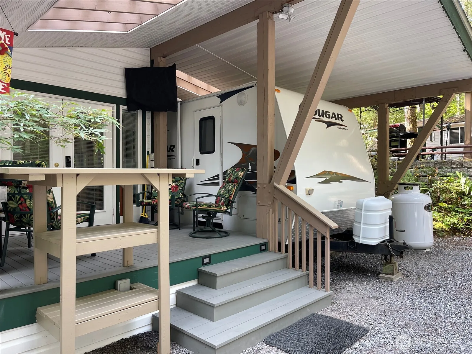 Welcome to Div. 1 Lot 148 at The Glen at Maple Falls. This is a great opportunity for someone that wants it all set up and ready to go. Freestanding structure has a ’06 Keystone Cougar trailer with a 230 sq. ft. add-a-room attached. Lots of room for guests!Has covered deck up front that looks right at the beautiful, well-built 168 sq. ft. gazebo. This is turn-key ready to move in as everything that is there stays. The Glen has 2 pools, hot tub, sauna, 2 clubhouses, restroom, shower, and laundry facilities, Library, disc golf, tennis courts, trails, river access, 24/7 security w/gated entrance, and so much more! Minutes from Mt. Baker for skiing in the winter or hiking in the summer. Zoned rec for 120 days/yr.