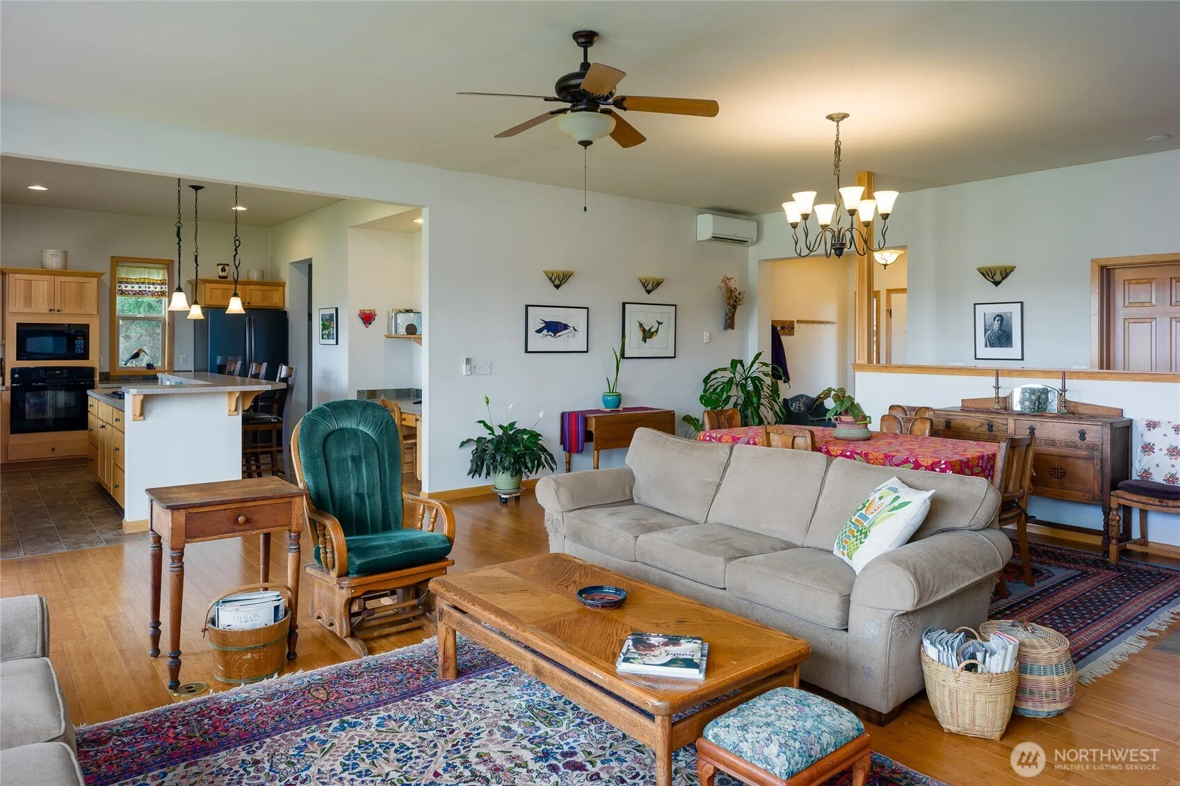 Sunny, idyllic, island farmstead with a main residence, guesthouse, barn, outbuildings, fenced garden, greenhouse, chicken coop with covered run, and more on ten pristine acres of field and forest overlooking a lovely valley on Lopez Island. The 2207 sf custom-designed house offers spacious one-level living with two bedrooms, two bathrooms, open great room, a den, large kitchen, walk-in pantry, laundry room, large decks, and an expansive territorial view to the east. The 926 sf ADU, situated for privacy from the main house and built in 2020, has an open kitchen/living area, one bedroom, 3/4 bath, decks and its own firepit. This beautifully maintained property awaits new owners and all their people, pets, toys, and tools!