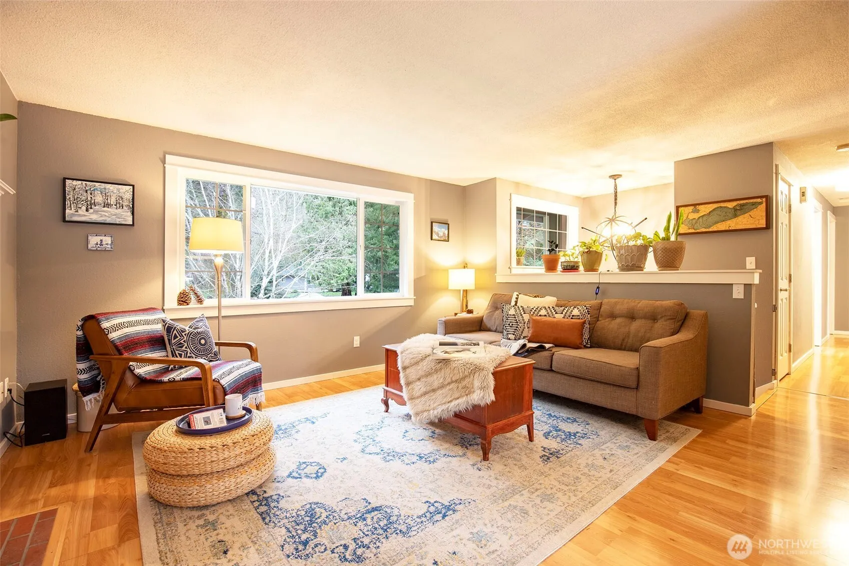 This beautiful Wilderness Rim home in picturesque North Bend has so much to offer! Cozy up by the wood burning fireplace in Living Room open to Kitchen with white shaker cabinets, SS appliances, quartz countertops, farm sink & walk-in pantry. Dining Room leading to expansive Back Deck. Primary Bedroom & Bath, Two more Bedrooms & Hall Bath. Downstairs is Bonus/Family Room for the ultimate flex space with access to lower Back Deck. Gas furnace and water heater! Large fully fenced back yard has garden space & perfect for outdoor entertainment! 2 car garage, driveway & RV parking. Swim in Rattlesnake Lake, watch beautiful wild life, enjoy hikes & walks around the neighborhood! Welcome Home!
