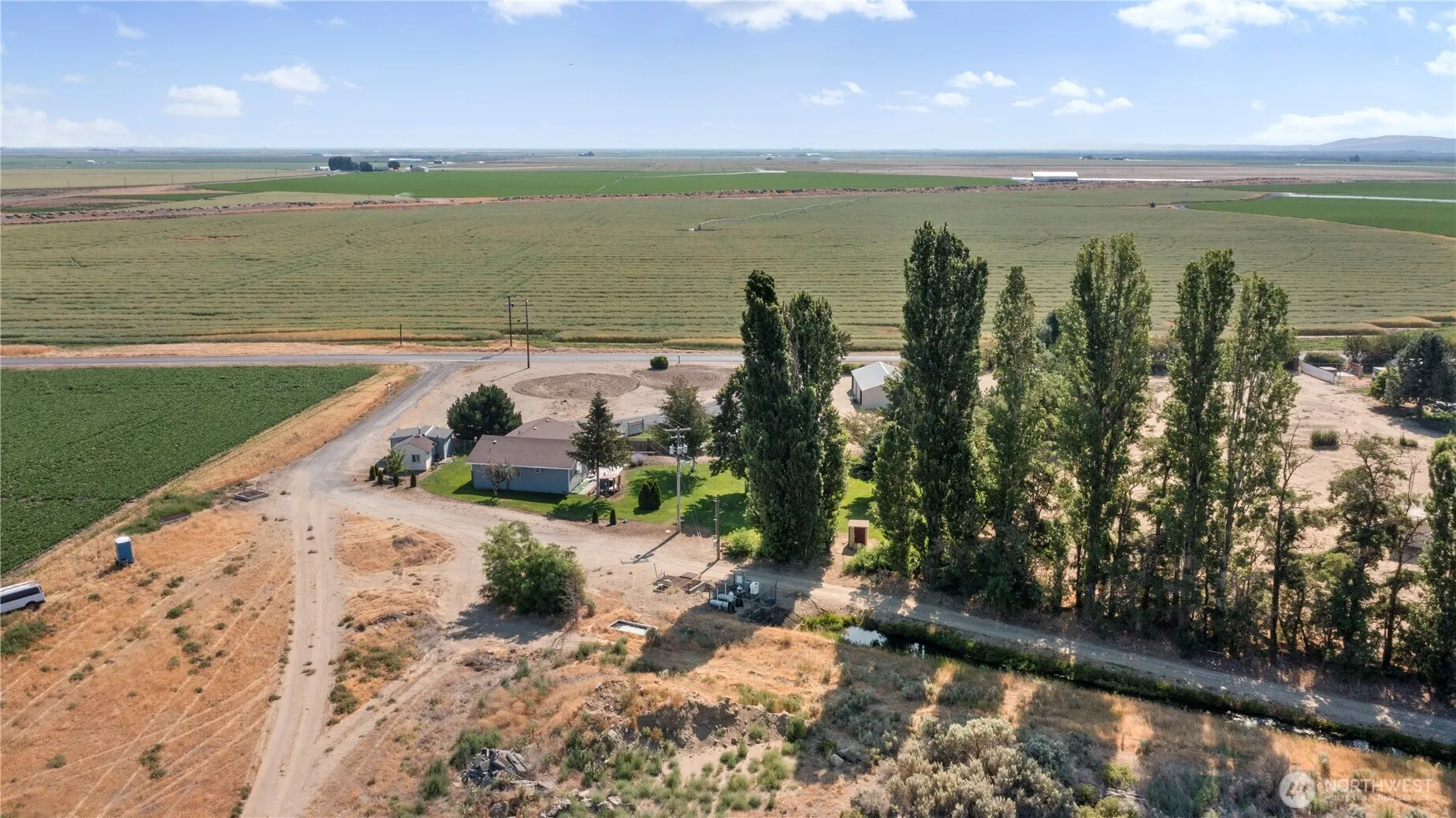 Charming country home! 3 beds, 1.75 bath rambler sitting on over 2.5 acres with private well and irrigation rights. Two ADU’s capable of producing $1k+ each! Two large shops. Mature landscaping. Room to grow a garden, plant crops or fruit trees. Surrounded by farm fields and a irrigation canal. Properties like this don’t come available often. Only 5 minutes from George. Great potential for Equestrian opportunities!