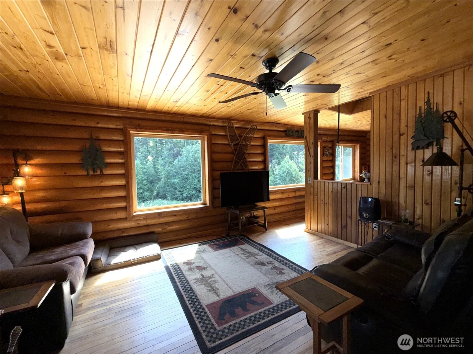 Charming log home in immaculate condition, nestled in the trees just minutes from town. The inviting first floor features a bright front room, kitchen, huge primary bedroom and covered front and rear porches. A hot tub is conveniently located off the rear deck. The house has a new metal roof, covered carport with lots of wood storage and root cellar. The large shop has a concrete floor and wood stove. The 10K solar system creates a net gain in power with all new top of the line equipment. This property has so much to offer!