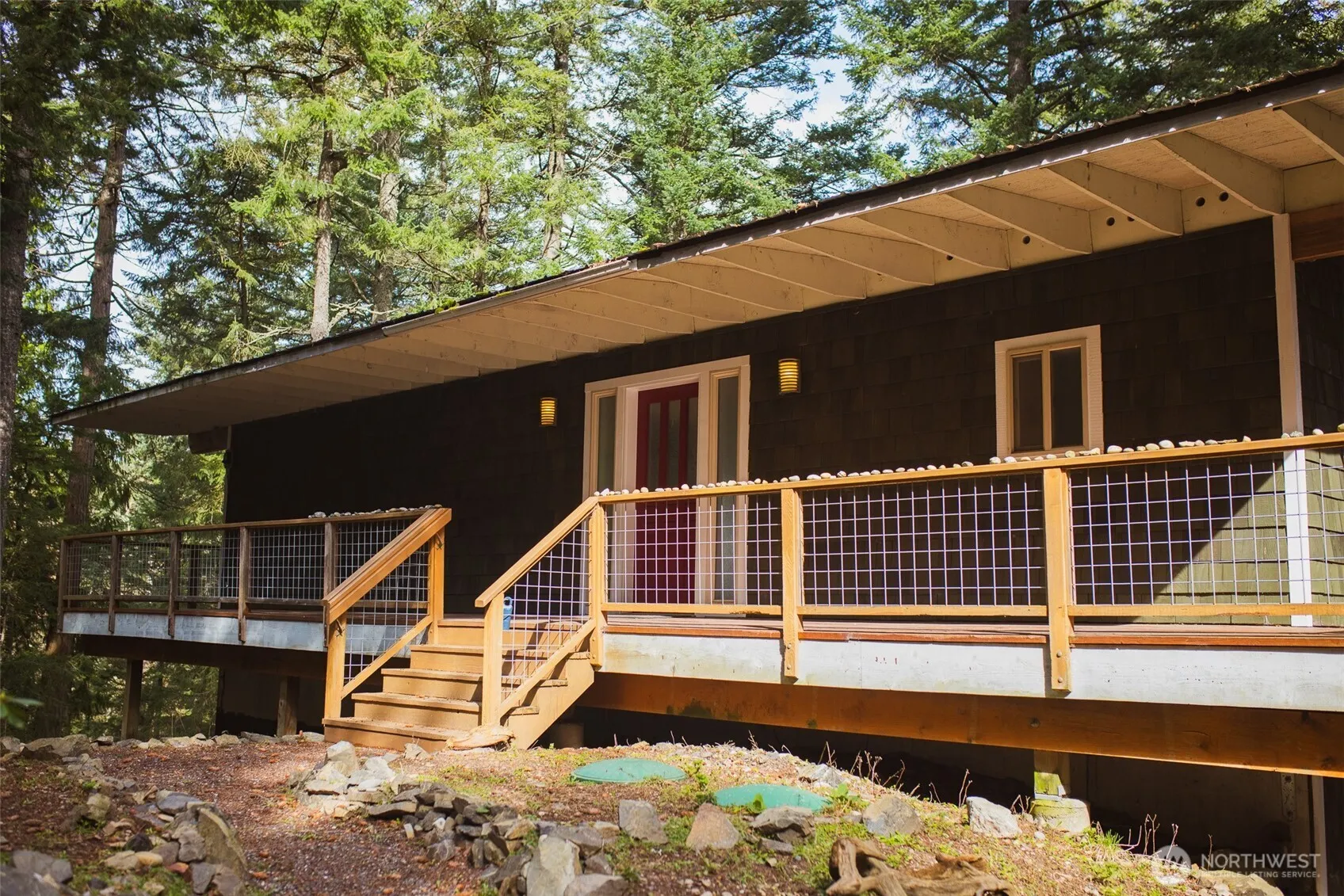 Welcome to this cozy cottage nestled in the treetops! Enjoy one-level living with plenty of room to grow on the spacious lower floor, ready for your finishing touches! You’ll love the stunning forest & views of Hales Passage from every angle, and the expansive, covered decks on both levels, perfect for year-round enjoyment. Inside, vaulted ceilings create an open, airy feel w/ tons of natural light, & the fir floors were milled from trees right on the property, adding a unique, natural touch. Plus, there’s a two-car garage and an outbuilding that’s ideal for a home office or art studio! As a homeowner, you’ll have access to a private saltwater boat launch, beach, playground, swim lake, & cabana—everything you need for a peaceful lifestyle!