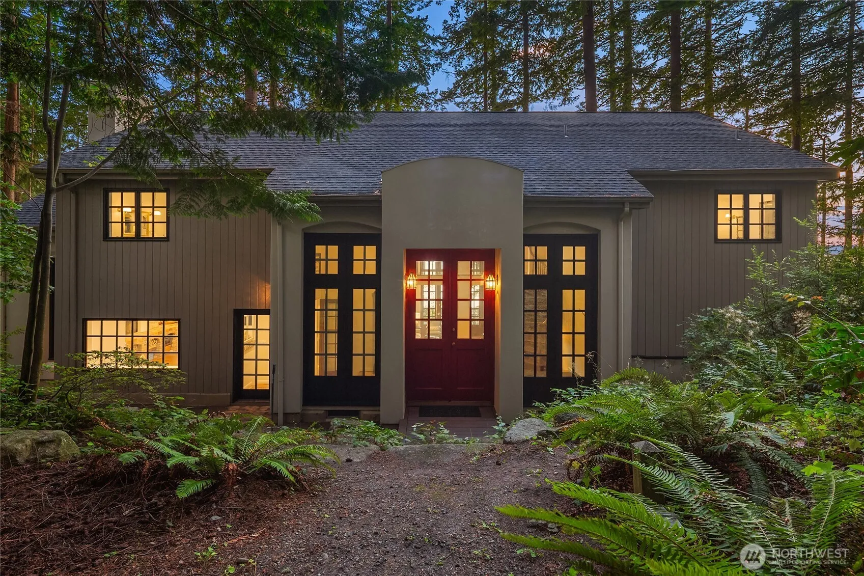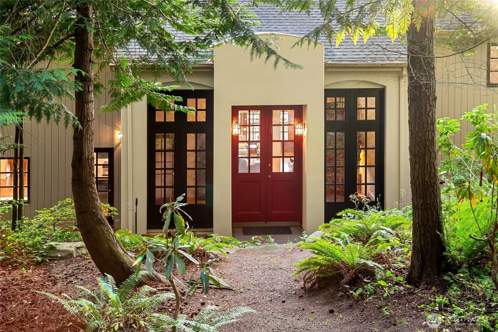 Tucked away on over 10 secluded acres near Kayak Point, this rare coastal property offers 500 feet of private shoreline along Port Susan, with panoramic bluff views of the Olympic Mountains and nearby islands. A private tram offers direct access to the beach below, blending dramatic vistas with true shoreline enjoyment.Built by the widow of a Seattle interior designer, the home combines Mediterranean flair with Pacific Northwest charm—featuring 14-foot wood-framed windows, wide-plank reclaimed fir floors, and three fireplaces. The original mission-style kitchen hearth remains, updated with modern amenities. Striking architecture, gardens, native landscape, and timeless craftsmanship complete this private escape.