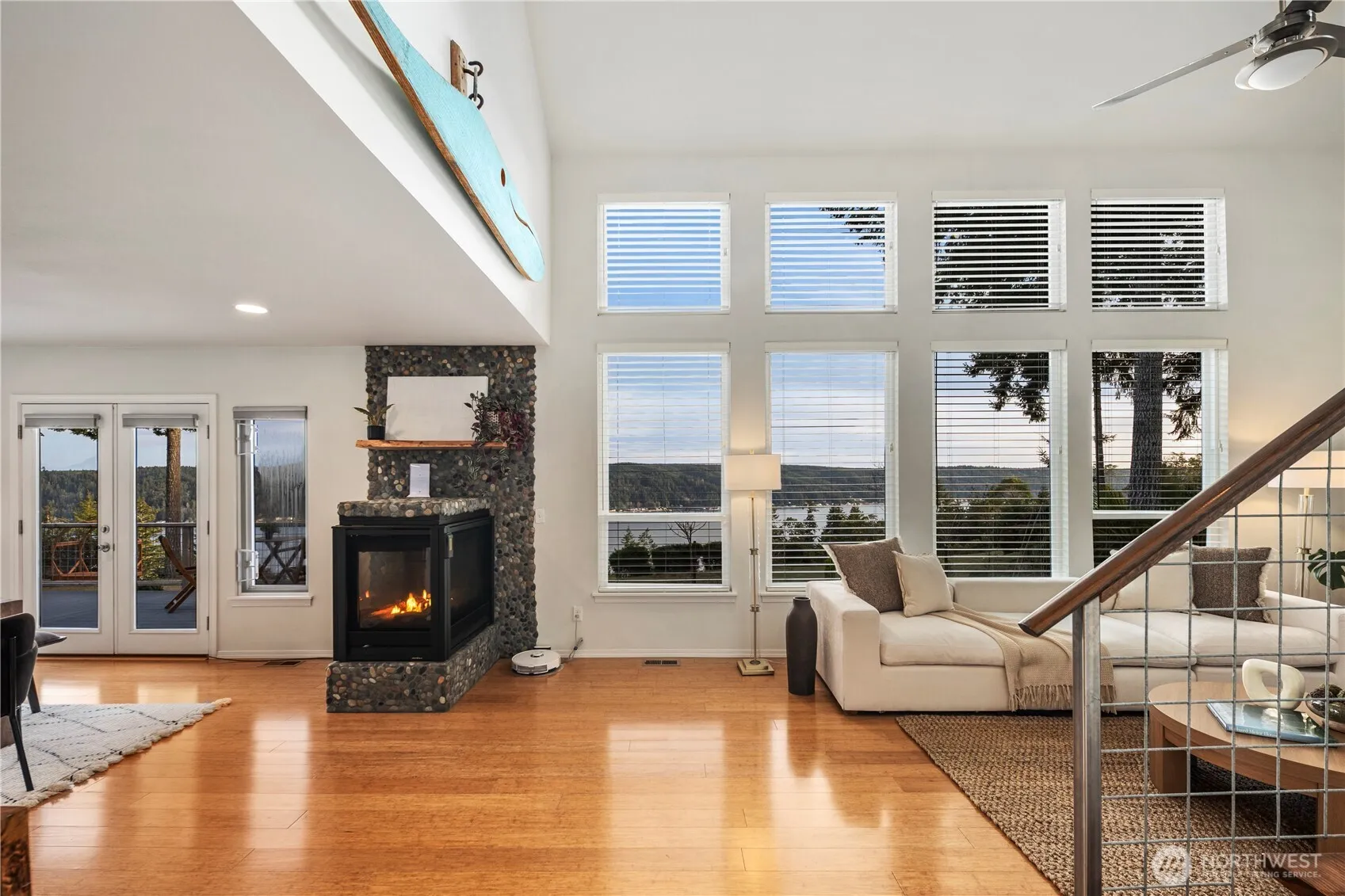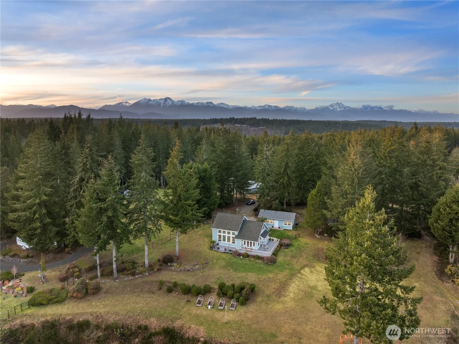 Prepare to fall in love with this stunning PNW contemporary abode! Perched atop the North Shore, 48 Space Place showcases commanding Eagle eye views of the Hood Fjord & Mt. Rainier. If location is everything to you, then this is your home. Flat, useable acreage cascades into a sloping forest of Madronas, framing the jaw dropping vistas. Bright home welcomes guests to sit & stay a while. Open layout is perfect for entertaining & provides a warm, enveloping energy. Elegant elements such as granite, bamboo flooring, stone, and rich stained wood grace the interior space. Expansive deck is perfect for sunbathing & late night stargazing. Heated garage with multi use space & RV hookup. Yard is partially fenced with darling, secure chicken coop!