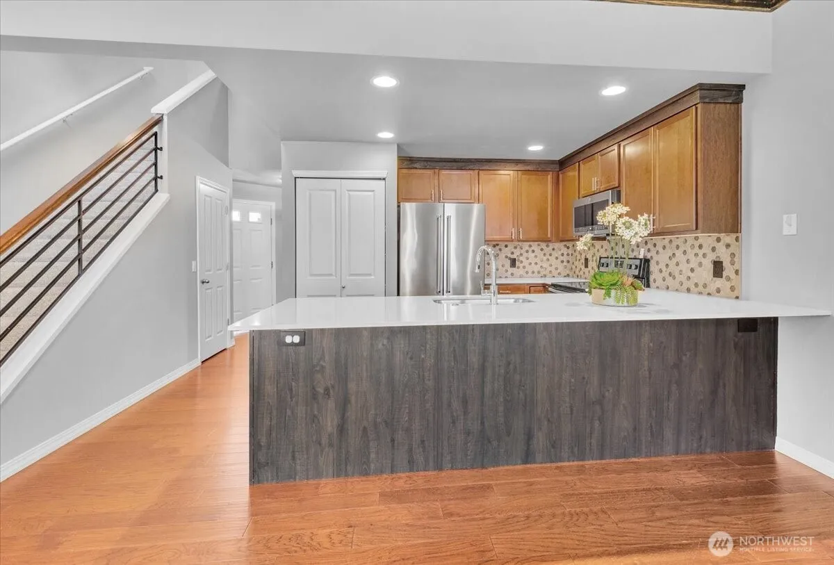 As close to new as it gets. Diligently maintained & a total update at purchase. Since 2017 to current the adds are: new refer/washer/dryer. New backyard side fences. New water heater, new dishwasher & microwave; new siding & exterior paint. HOA replaced back fence in 2024. In past month-new carpet, inter paint; front & back yard. Spring 2026 HOA to replace roof & skylight in upstairs bath. Welcoming entry introduces a wide open floorplan w/huge ceilings, lots of windows & natural light. Pwdr room w/live edge ctr; fireplace w/banks of windows. Up to the minute kitchen w/custom cabs; trim/tile, tons of cntrs,undermount sink. Classy wood & metal rail. Primary w/closet system. Big laundry w/cabs. Party size patio– 2 car gar – Come & Get it!