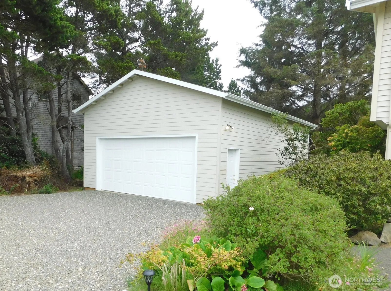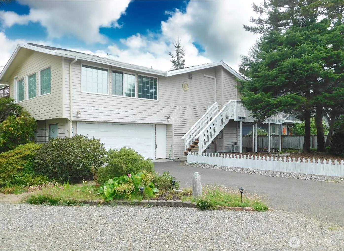 Instant equity, listed below assessed value. Desirable Tides West home on the beach side. Tons of shop space in the detached 24×36 shop with a large loft for storage. This Split level also has a large attached garage entering the lower level. Lower level has a laundry room, 2 bedrooms, full bathroom, living room and partial kitchen area. Upstairs you will find the gourmet kitchen with newer appliances, huge island, and dining area. Vaulted ceiling with exposed beams through out. Down the open hall you will find the 3rd bedroom, full bathroom, and open living room. Private deck off the living room has a privacy fence all around. House sits on a generous double lot, partial fenced back yard is great for entertaining or gardening.