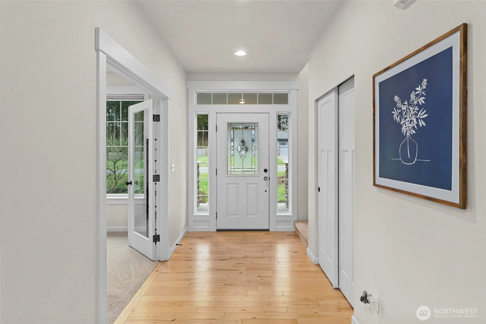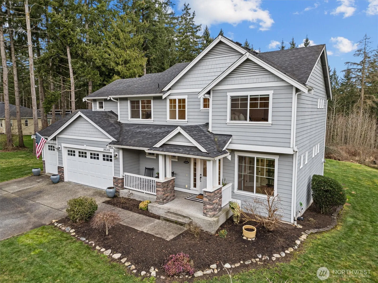 [PEACEFUL SURROUNDINGS] Gated Community 1+ ACRE private lot in HYLAND PARK. 4 beds + OFFICE on main floor will check all your boxes. GREAT ROOM CONCEPT w/spacious kitchen, Granite ISLAND, stainless appliances, HARDWOOD FLOORS, Dining + FAMILY room w/corner GAS fireplace. 4 spacious BEDS w/LUXURY Primary Suite that boasts a walk-in closet w/CUSTOM Built-in CLOSET system, 5-pc bath w/shower, dual sinks, tub + plantations shutters. Covered back porch w/wood soffits for year round outdoor enjoyment. Fully finished 2 car garage heated bonus Seahawks room. Commuters dream located just minutes off 1-5, 3 car garage + level driveway w/additional parking. Natural beauty surrounds on 1+ ACRE park like lot w/fruit trees & HOT TUB! [WELCOME HOME]