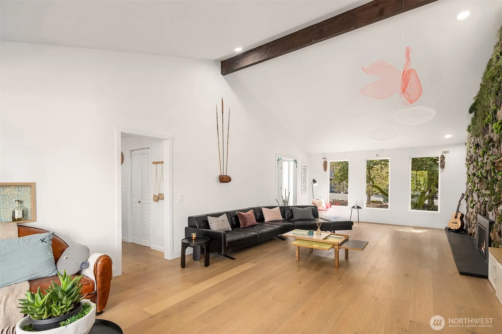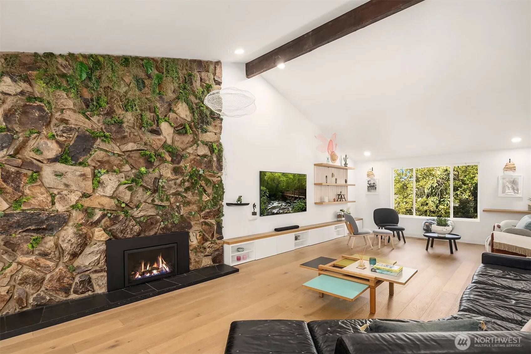 Nestled in the heart of the cherished Groveland Beach community, this stylishly renovated home blends artistic flair with modern luxury. Beautifully reimagined with white oak floors, French and Moroccan lighting and exquisite handcrafted tile. Vaulted ceilings and chic details create a bright and playful ambiance. The fun kitchen features top-of-the-line appliances and a spacious island for entertaining and seamlessly connects to the expansive outdoor deck for alfresco dining and entertaining. Upstairs, the primary suite offers a serene spa-like retreat of sanctuary and relaxation. The true gem of this property lies in its coveted location near Groveland Beach Park, perfect for dipping your toes in the lake and enjoying an outdoor picnic.