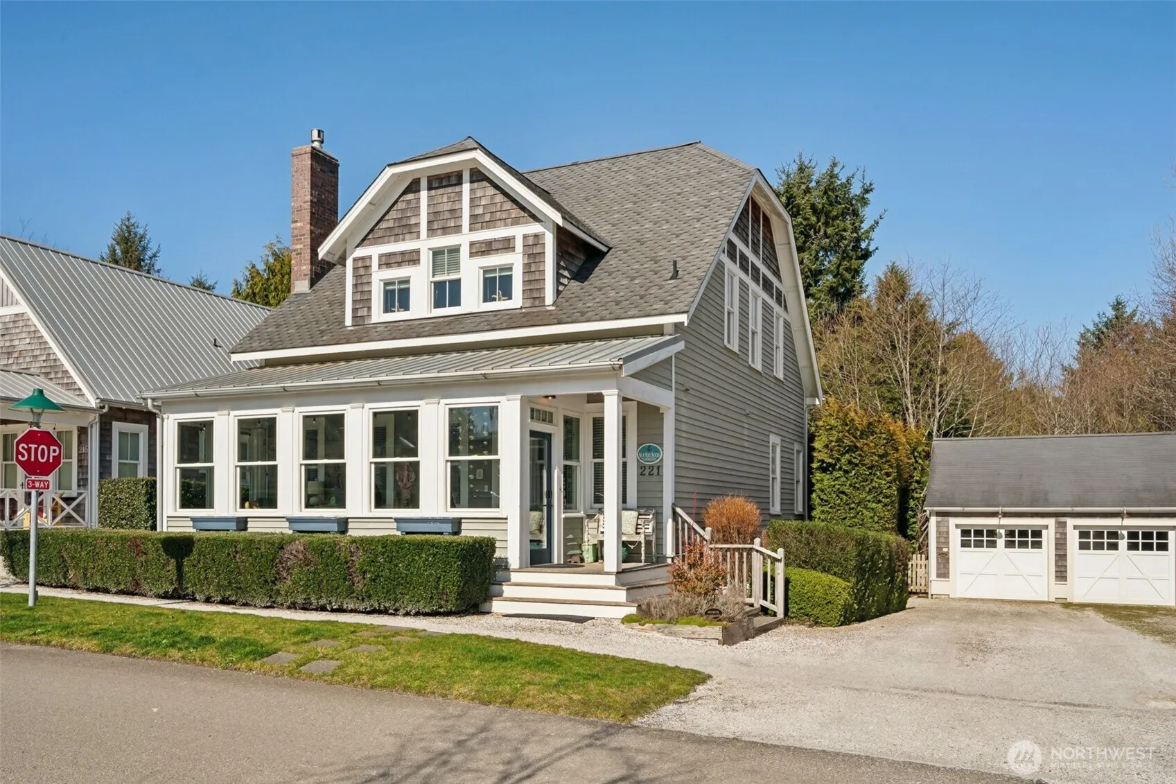 Take in quiet mornings from Sea You Soon, situated in the well-established Alderwood neighborhood a short walk from the town center. Be welcomed from the large enclosed porch to the spacious open-concept living area and main floor primary suite. Ascend the stairs to the large media room, complemented by a bedroom with an ensuite bathroom and additional guest bedroom. The lower level great room is the perfect media room or flex space while a fourth bedroom completes the lower level. Outside is a private hot tub, spacious patio, and garden area ideal for hosting gatherings in an intimate setting. Parking is made easy with a one-car garage and driveway.