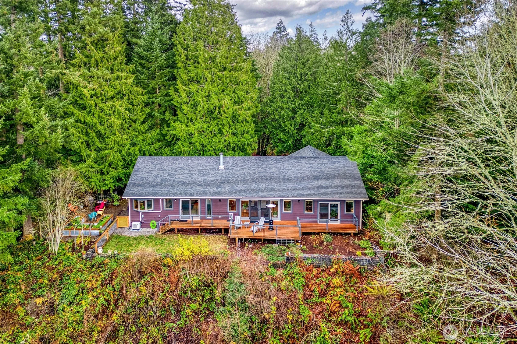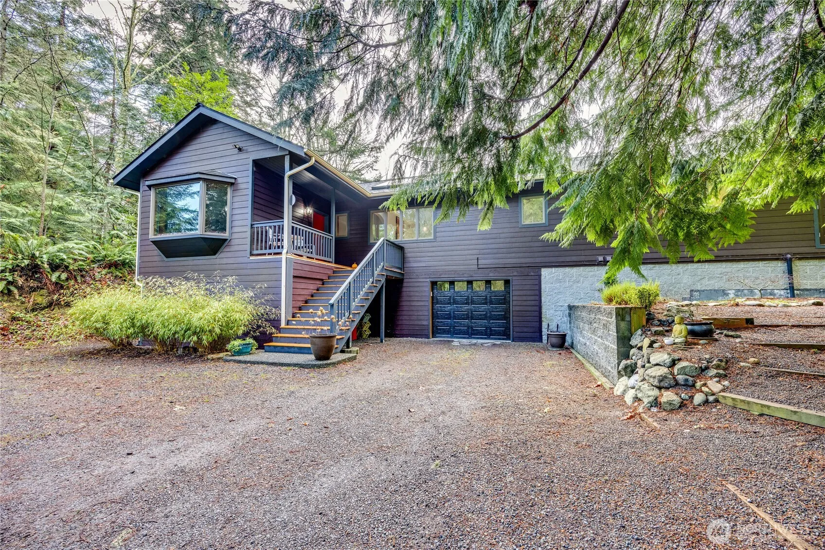 Stunning sunsets, sweeping mountain views, and the sensation of peace andprivacy define this Chimacum home overlooking Beaver Valley. This stylishcontemporary home has been fully modernized, including hydronic floorheating, roof/skylights, interior/exterior finishes, & new appliances,including a Wolf Range. The primary bath & kitchen designs feature Italian andNordic tiles, fresh lighting, and refinished cabinetry. The open-conceptmain floor offers ample storage space throughout. The lower level includesan oversized garage and extra spaces, used as a workshop and a home gym.Relax in your wood-fired sauna, take in the vibrance of Chimacum, enjoy thenearby trails, beaches and proximity to local fresh produce, cider, and PT &Seattle!