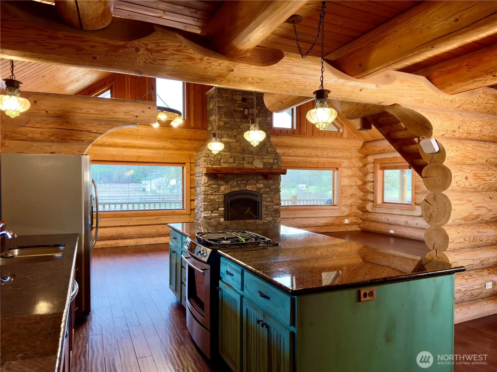 Log Home lovers? Everything you need here with river frontage! HUGE 60×72 Shop with 15 ft. doors and 600 Amp service! 48×48 Barn with three stalls, covered truck/trailer parking. The detached 2 car garage has a nearly finished ADU with a bathroom. A truly unique combination of style and function. Enjoy the private beach on your own riverbank, Wrap around deck, rock fireplace and much more! Complete with partially finished basement and covered run ins. Make this gem shine again.