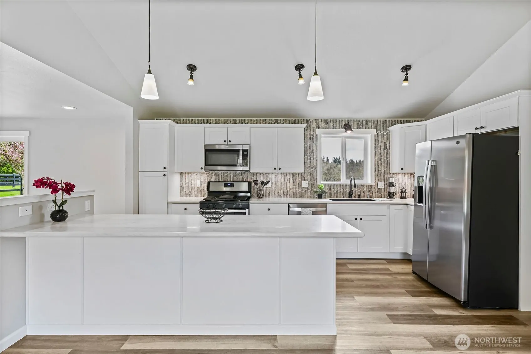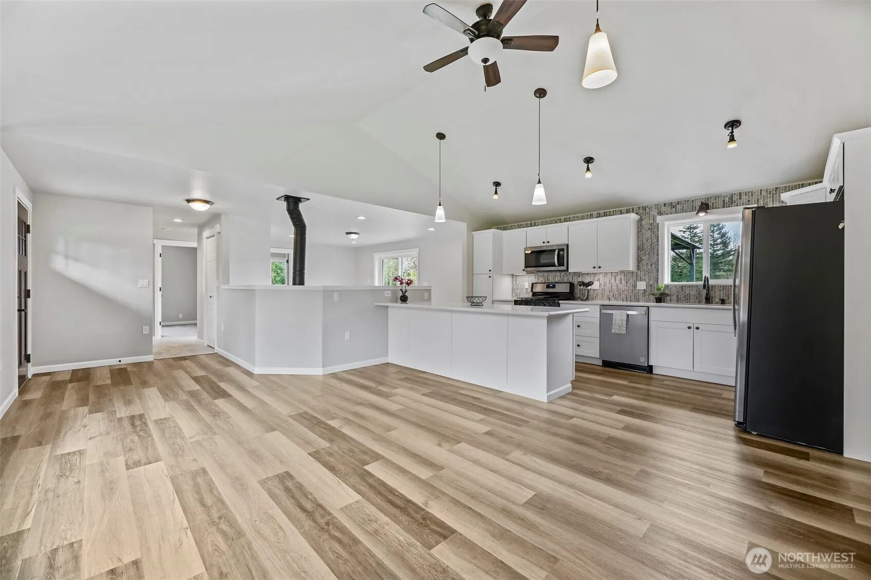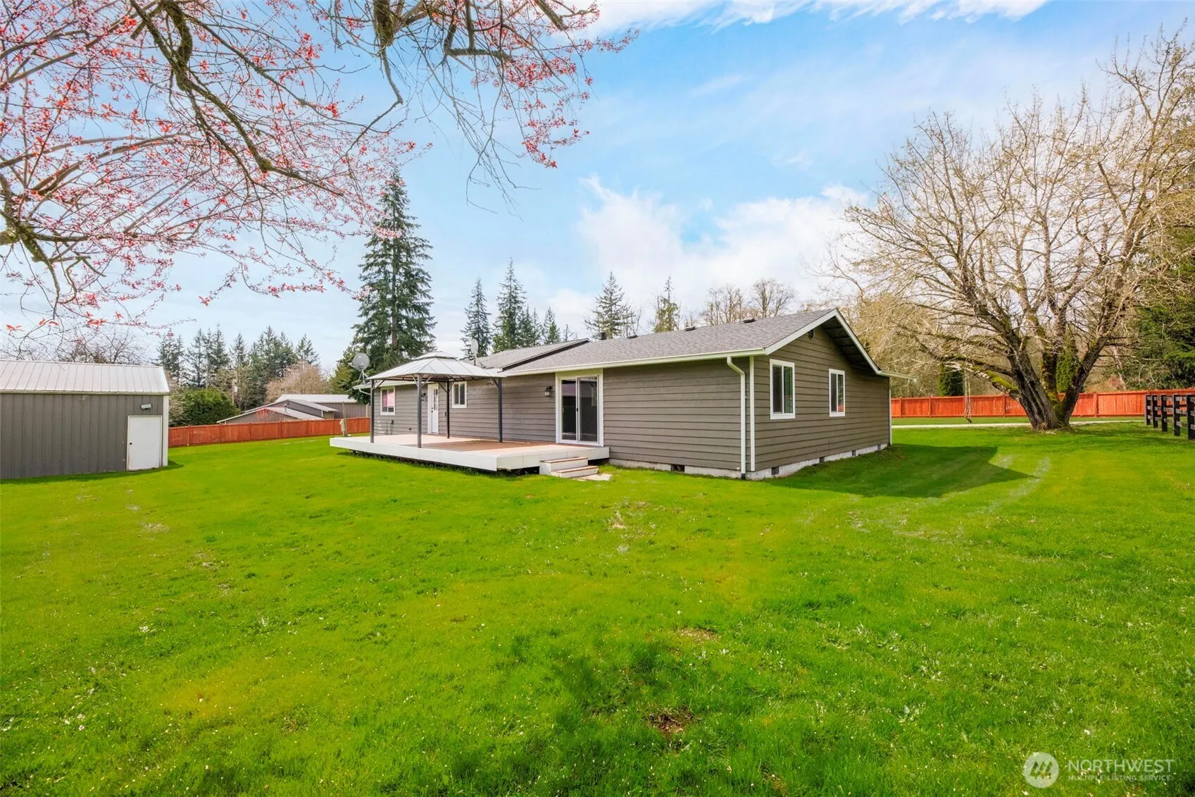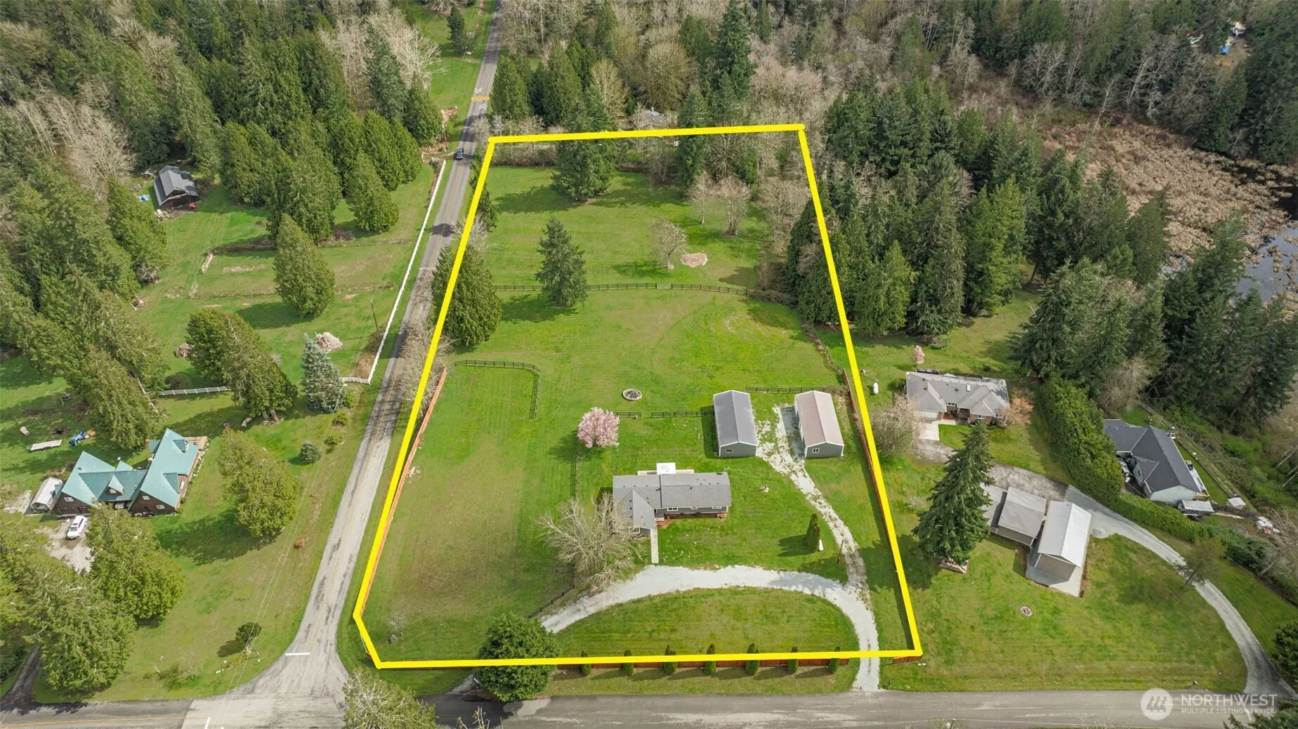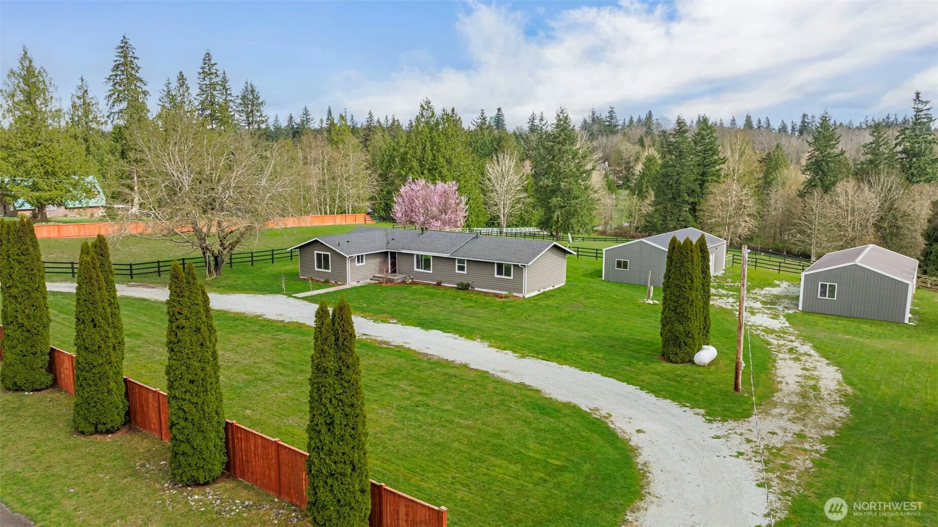 4 BED, REMODELED, 2 SHOPS, 5 USEABLE ACRES! 1900sf rambler+2 shops! Home features: 4 bd (double primary/bonus), 3ba, a modernized open kitchen w/Corian, white cabinets, stainless appliances, under cabinet lighting, pull out drawers, & stunning vertical backsplash! NEW USB Outlets, modern vinyl plank flooring, carpet, windows, lighting & paint inside & out! Hassle-free w/dual heat-propane stove & newer forced air furnace + WIRED FOR GENERATOR! Newer insulation, ducting, & barrier in attic & crawl! (2) 24×48 shops w/4 bays, both newly insulated w/220v, newer floor paint, exterior paint & gutters! DRY 5-acre fenced & cross fenced w/3 rail black vinyl fencing & 6′ cedar privacy fence. XL semi-circular drive! Motivated seller! Bring offers!