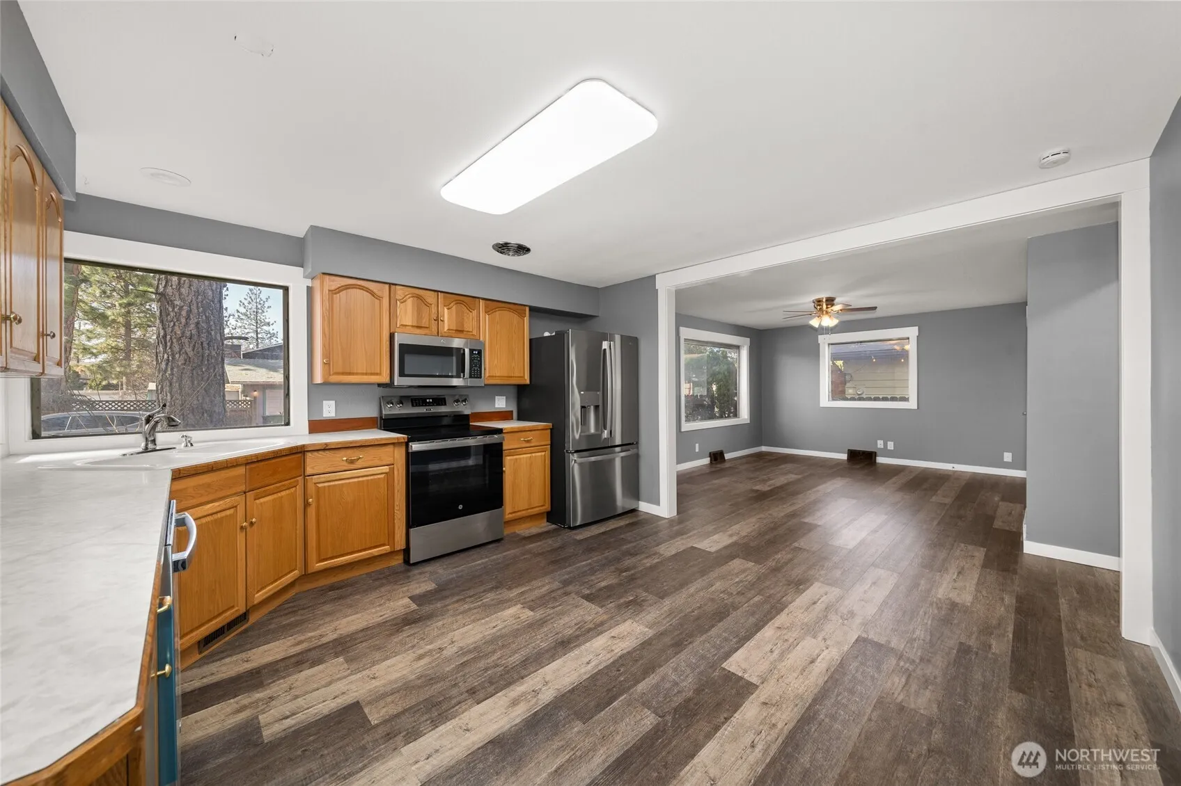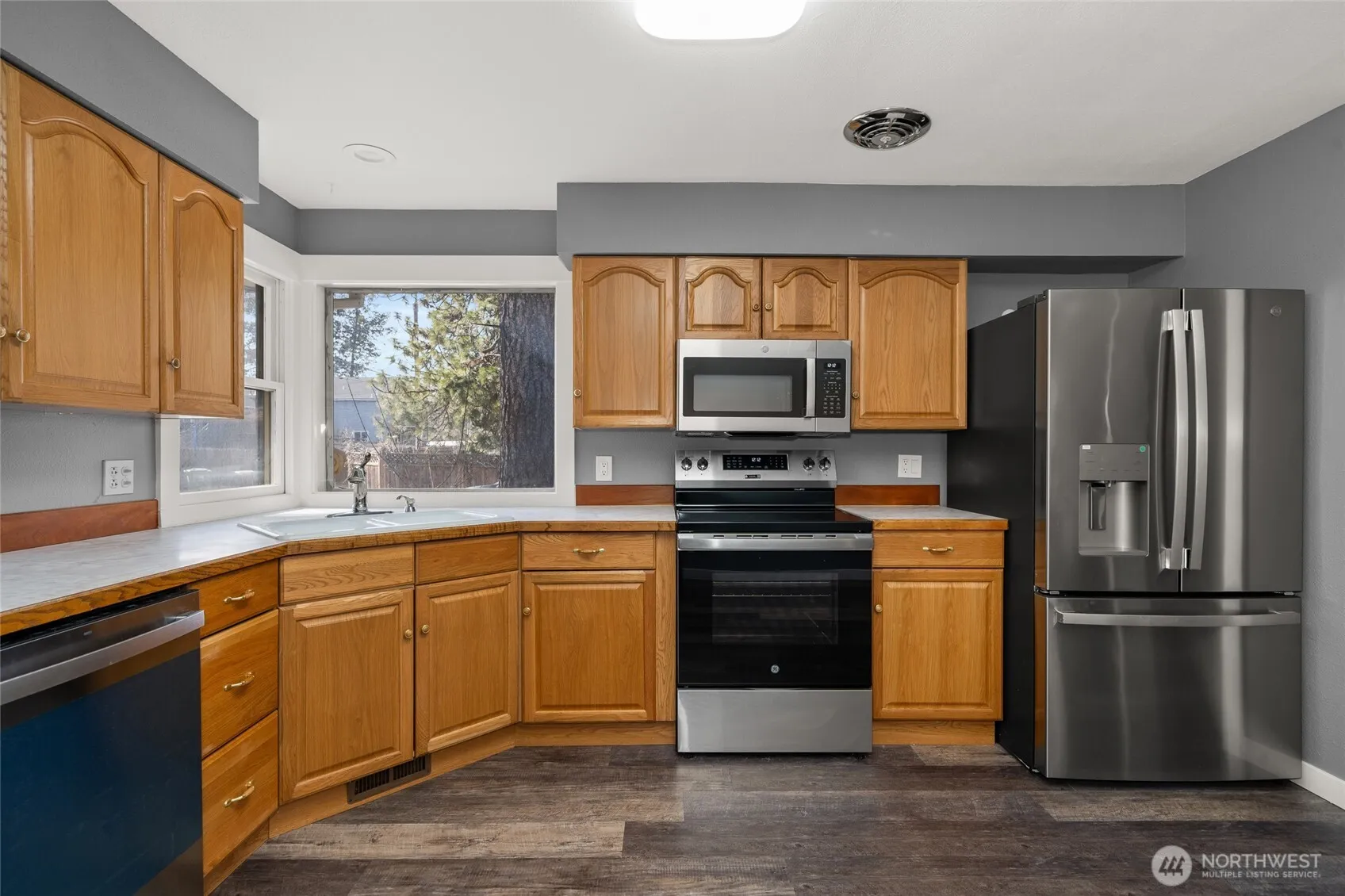 Welcome to this charming 4-bedroom, 2-bathroom home with an attached 1-car garage, nestled in the heart of Spokane’s South Hill. The main floor showcases 2 bedrooms, a full bathroom, & updates including new flooring & paint. The beautifully renovated kitchen features new stainless-steel appliances & opens into a spacious living area. Downstairs, you’ll find a living room, 2 additional bedrooms, a second bathroom, laundry hookups, and an unfinished utility room offering extra storage or potential for customization. The fully fenced backyard provides a private retreat, ideal for relaxation or entertaining. Enjoy the convenience of being just minutes from parks, schools, shopping, dining, & easy access to downtown Spokane & public transit.