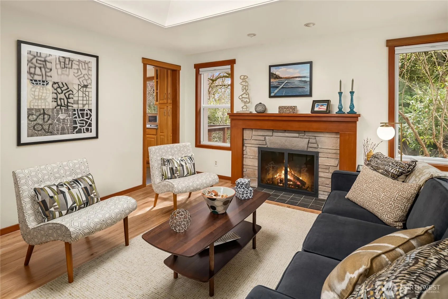 Walk to the beach! Trail begins just steps from your door. Gorgeous Northwest home nestled on private nearly half acre lot with mature landscaping. Soak up the tranquil setting on two decks and three patios. Abundant natural light, real fir wood trim and finishes, updated kitchen with tons of storage, 3 gas fireplaces, a great long-lasting metal roof, fenced back yard, and beautiful newly refinished hardwood floors throughout. Huge rec room. Primary suite has its own deck and 5 piece bath. Host your friends – everyone will love spending time in this peaceful, private location immersed in nature. Come home to your very own private retreat. Steps away from a serene well-maintained trail leading to Seahurst Park beach. A truly unique property!