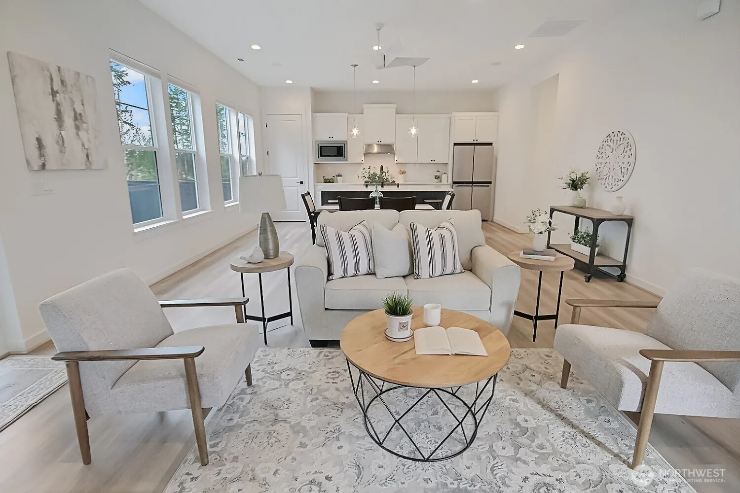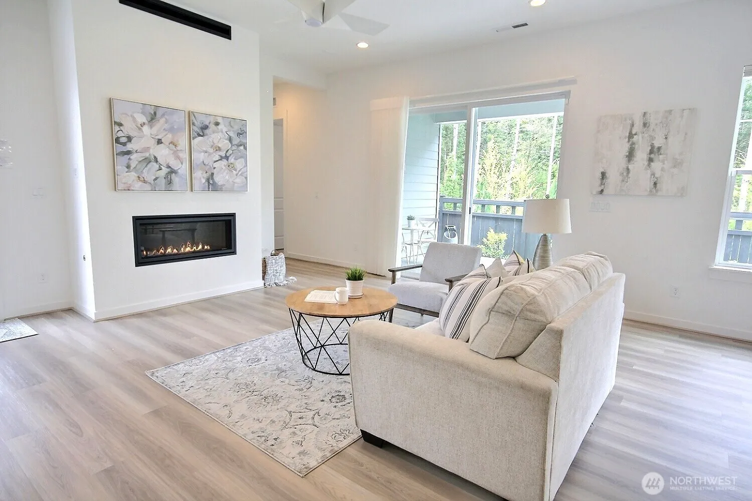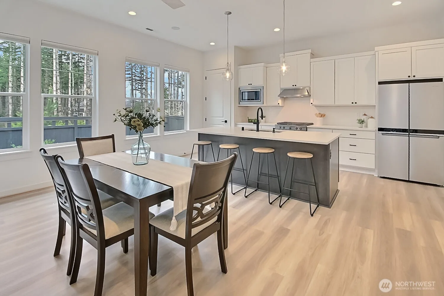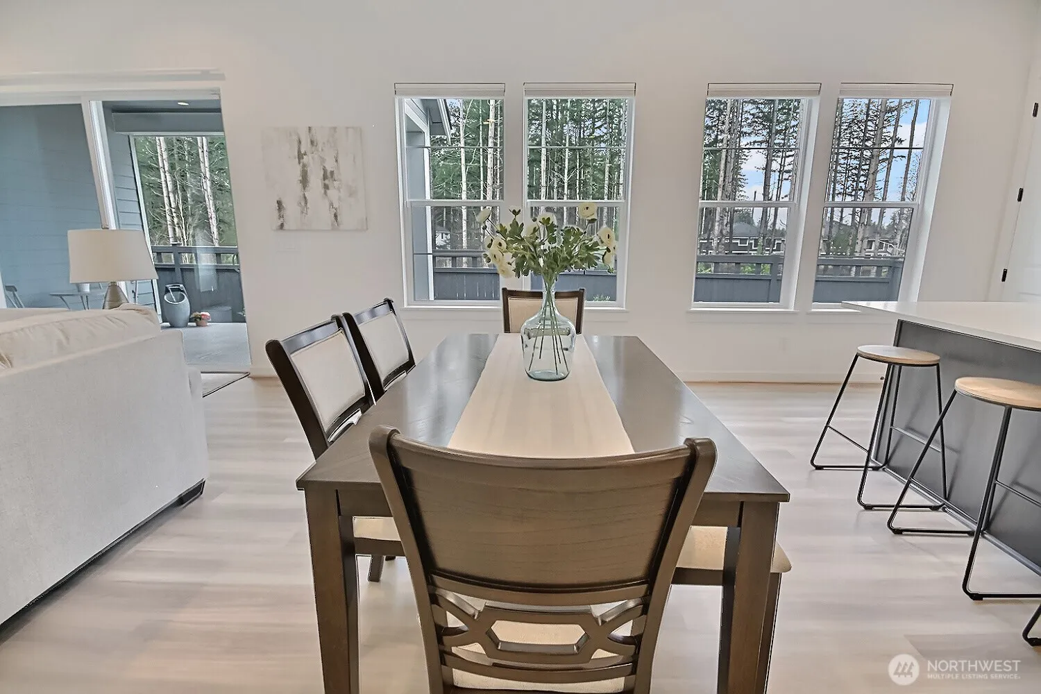 Enjoy the exclusive 55+ Ten Trails Regency community, this stunning home offers the perfect blend of luxury, comfort, and privacy. Enjoy serene greenbelt views with no rear neighbors. Just two years young, this home boasts many upgrades, including LVP flooring, quartz countertops, slide-out kitchen cabinets, a custom pantry & soft-close drawers and much more. Cozy up by the gas fireplace or relax in the professionally designed yard with covered patio. Located near the private clubhouse, where breathtaking Mt. Rainier views set the scene for days filled with pickleball, bocce ball, swimming & social events. Or enjoy miles of scenic walking trails throughout the community. Experience resort-style living in this friendly, engaging community.
