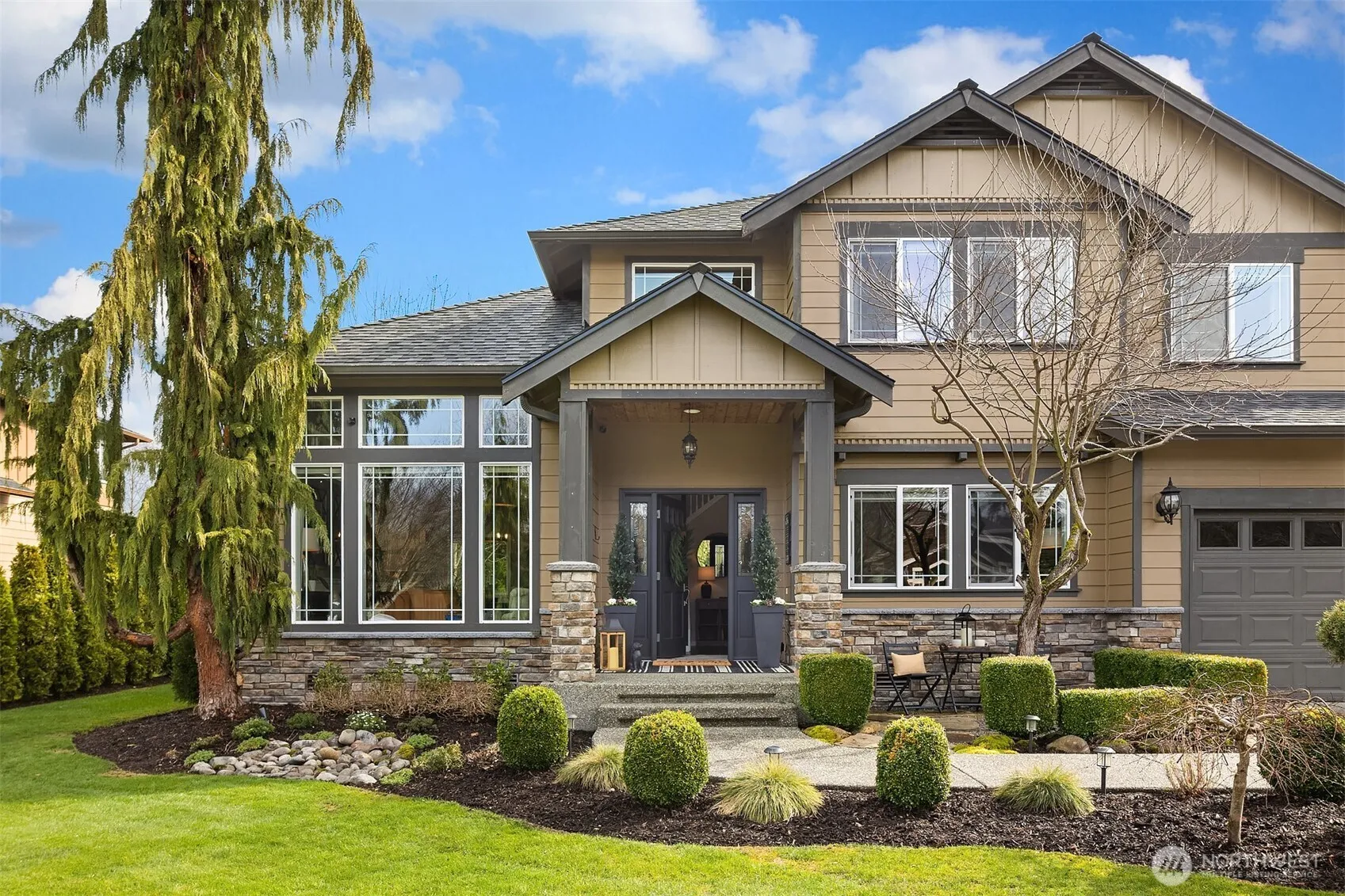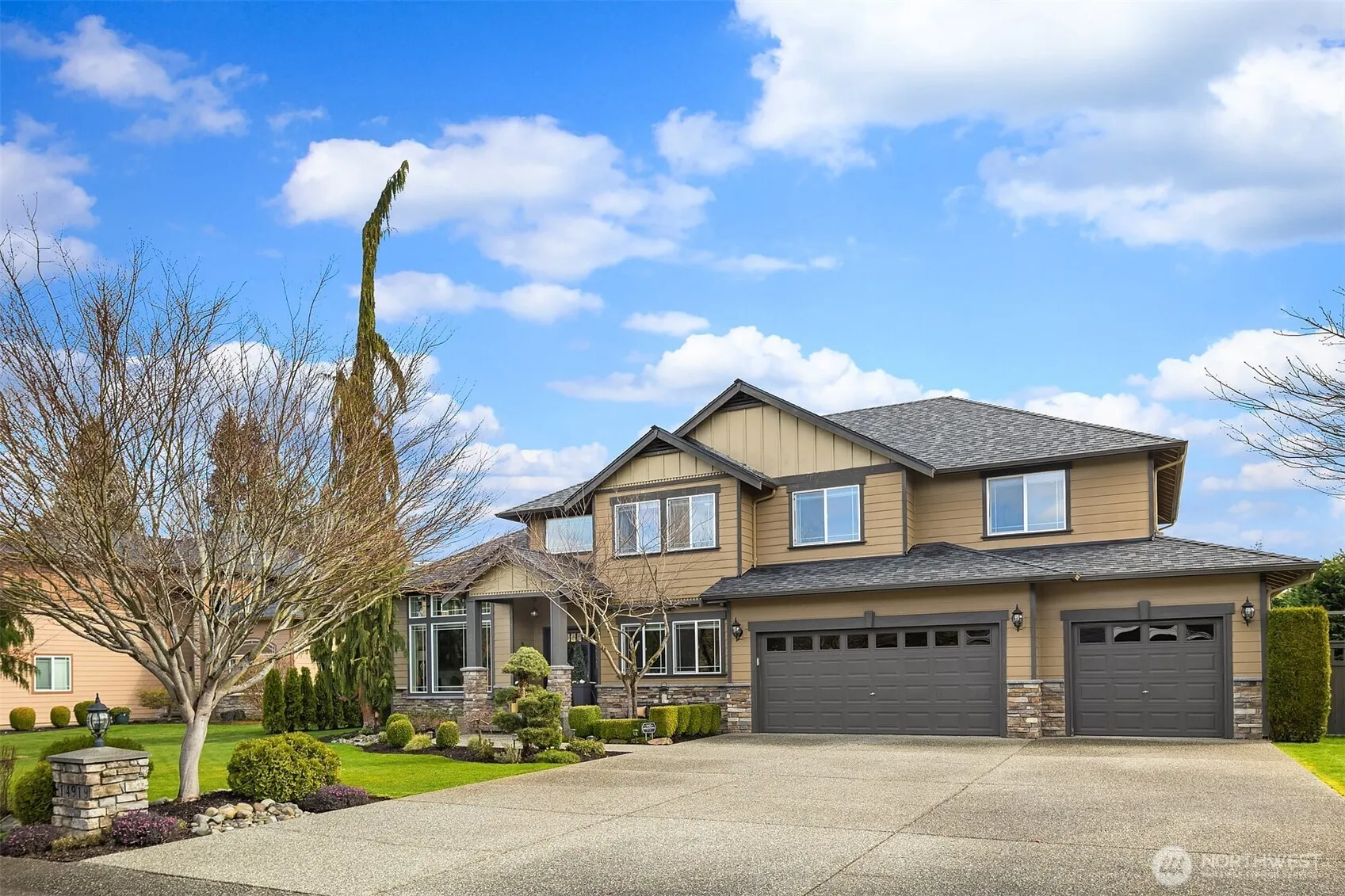 Spectacular home on a huge shy 1/2 acre in the Old Owen area of Monroe. Perfectly located on a quiet dead-end street. This updated home features a designer kitchen with all-new quartz counters and room at the island for 5+ people. The front living room flows nicely into a formal dining room. The breakfast alcove opens to the private backyard. 4 bedrooms plus a den/office, the upstairs features a spacious primary ensuite with no common walls to the other 3 bedrooms. The upstairs bonus/media room is perfect for movies or hanging out. Don’t miss the finished gym off the back of the garage. The fully fenced oasis features a sunny patio, large pool, 2 gazebos, fire pits, mature landscaping and tons of room to roam. 3-car garage, A/C, new roof.