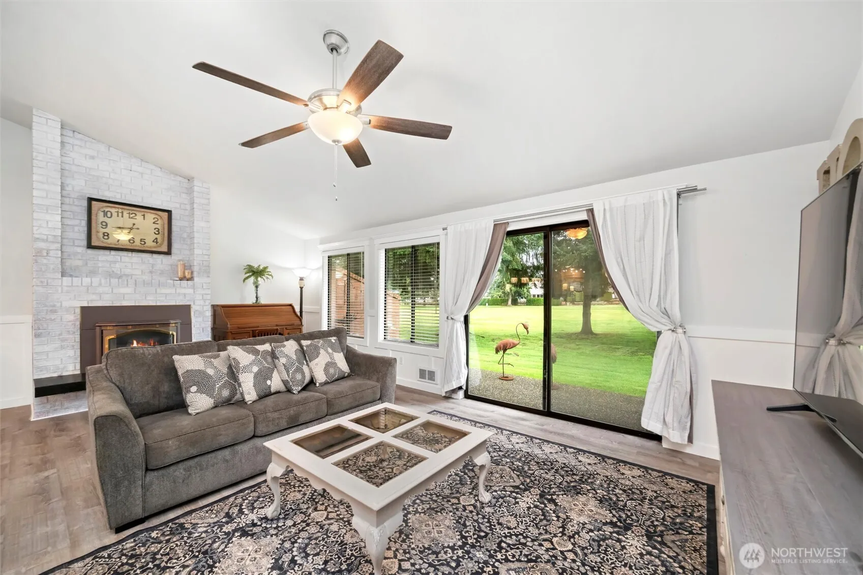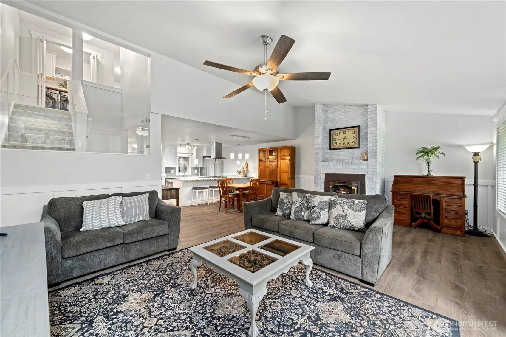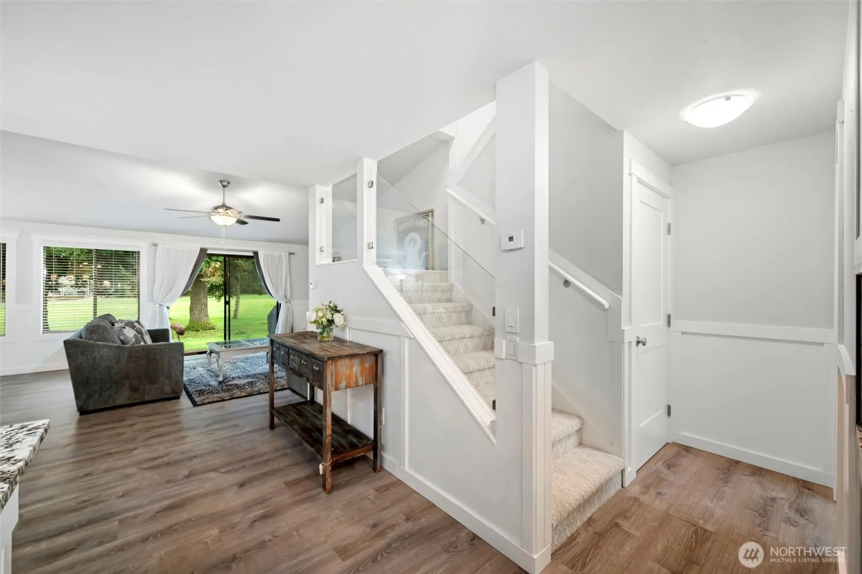 Skagit Golf & Country Club completely renovated condo on the 9th fairway. Main level with open concept living, dining & gorgeous kitchen + 1/2 bath. New granite countertops, cabinets & appliances. Gas fireplace on thermostat to keep you warm. Sliding door to private patio. Upstairs with 2 bedrooms, 1 full bath & spacious utility with butcher block folding area. Condo was completely renovated on all surfaces in 2023, including flooring, appliances, cabinets, countertops, light fixtures, hot water tank, & wall heaters. Condo association recently replaced the roof, driveway, gutters, garage doors, & painted. You can relax & enjoy this home without doing any projects! Water, sewer, garbage, cable & landscaping included in your dues.
